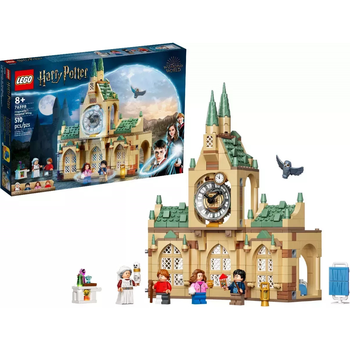 - В Больничном крыле Хогвартса находится три кровати, ширма и минифигурка мадам Помфри, которая толкает тележку с снадобьями и конфетами.