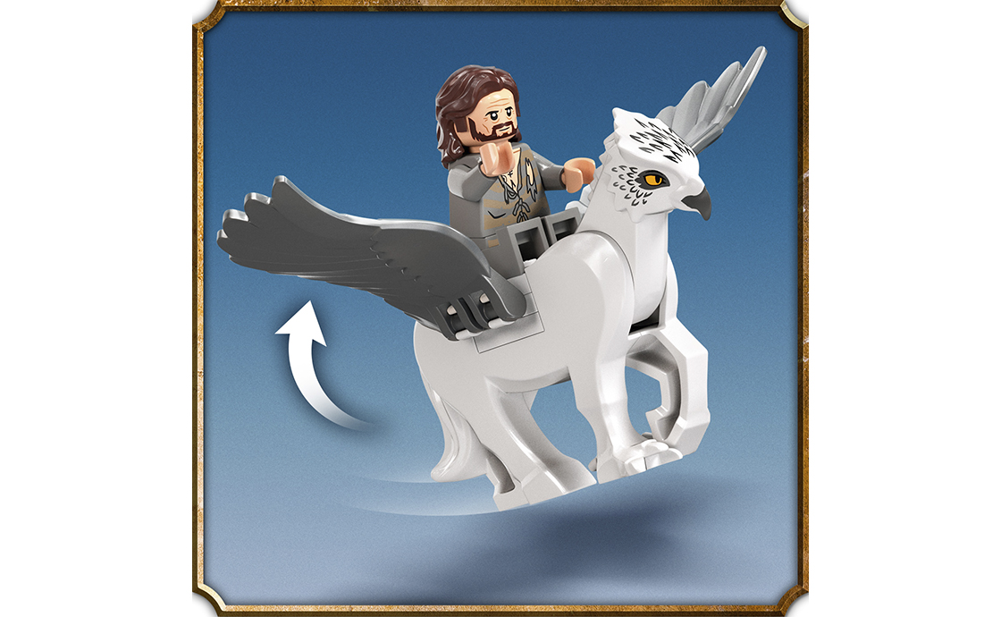 Этот универсальный игровой набор основан на памятных сценах из фильма Гарри Поттер и узник Азкабана. В него входят 3 минифигурки культовых персонажей — Гарри Поттера, Гермионы Грейнджер и Сириуса Блэка, а также известный Клювокрыл Бакбик, имеющий подвижные крылья и место на спине для пассажира-минифигурки. Тюремная камера высоко в башне Хогвартса – сцена для смелого спасения, а знаменитая спортивная метла Гарри «Молния» отнесет детей в следующее волшебное приключение!