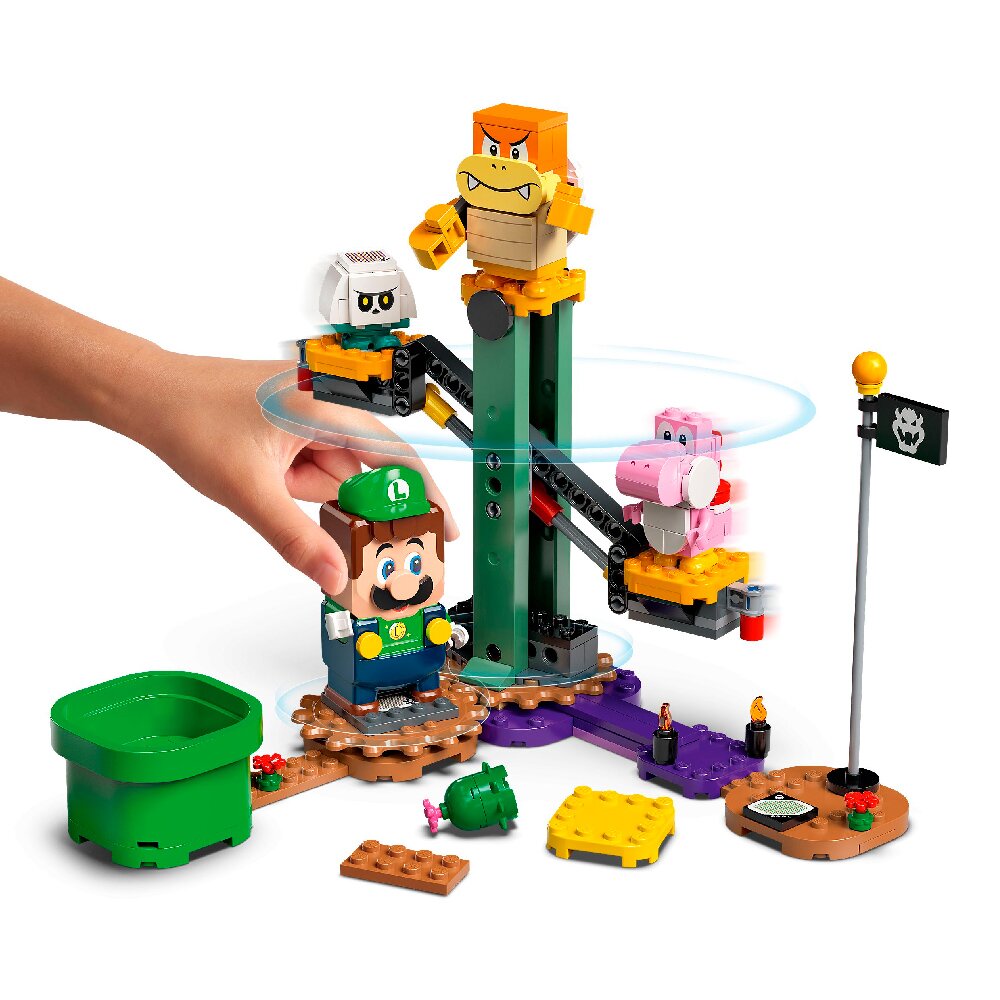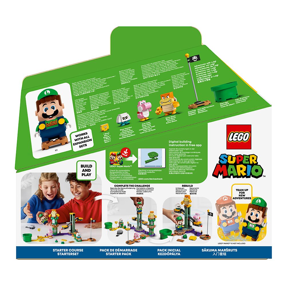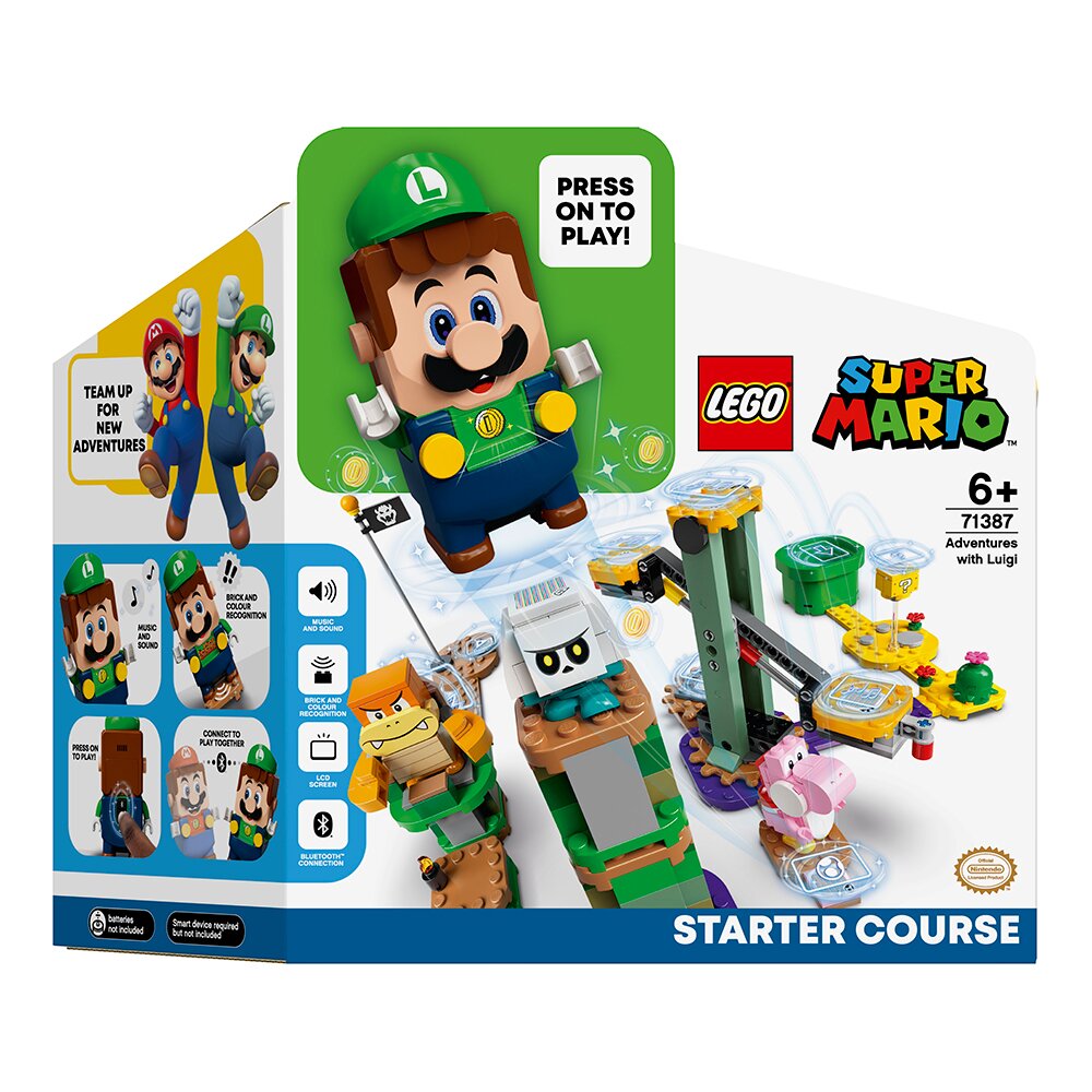 У фигурки Луиджи есть датчик цвета, ЖК-экран для отображения различных реакций на движение, динамик, воспроизводящий звуки и музыку из видеоигры. Для питания игрушки требуются 2 батарейки AAA (нет у комплекте). Кубики коричневого цвета в башне вызывают различные реакции Луиджи. Когда герой окажется на финише, на его экране отобразится количество заработанных монет