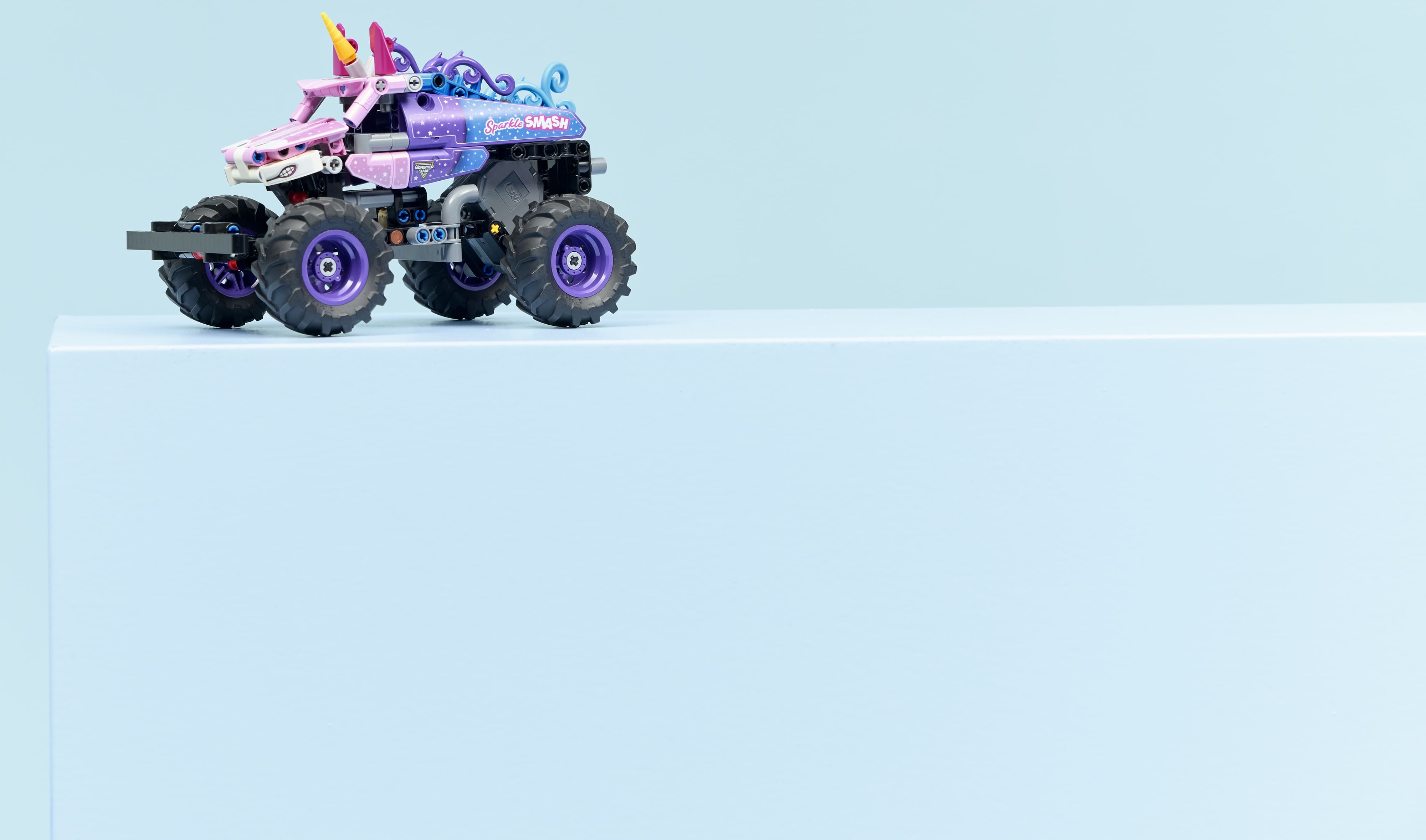 Воссоздайте захватывающие приключения Monster Jam™ с помощью этого детского игрушечного грузовика с инерционным механизмом для мальчиков и девочек от 7 лет и старше. Используйте крутую функцию инерционного механизма, чтобы запустить грузовик Sparkle Smash™ (42220) и повторить потрясающие трюки, выполняемые культовыми монстр-траками. Этот детализированный монстр-трак с единорогом имеет аутентичные детали дизайна, такие как сверкающие звезды и культовый рог единорога, вдохновленные настоящим грузовиком Sparkle Smash. Этот конструктор-монстр станет отличным подарком для мальчиков, девочек и детей, которые любят машинки LEGO®, игрушки с единорогами, машинки с инерционным механизмом и захватывающие дух события Monster Jam.