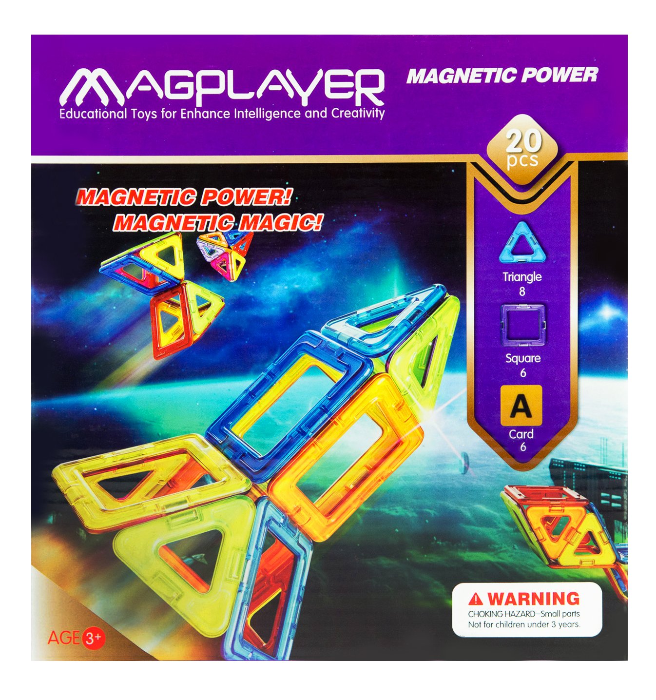 Конструктор MagPlayer с 20 деталями в форме квадрата и треугольника познакомит ребенка с основами конструирования геометрических фигур. Также в набор входят карточки с буквами, которые ребенок сможет быстро запомнить и изучить. В основе конструктора MagPlayer использован магнит, не требующий соблюдения полярности для соединения. Поэтому даже самые маленькие дети смогут легко конструировать фигуры. Магнитный конструктор всесторонне развивает интеллект и моторику рук. Набор комплектуется большой схемой для создания самых разных фигур.