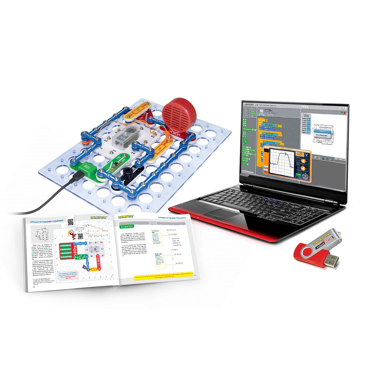 В наборе 35 видов элементов, всего около 50 деталей, в том числе RGB-светодиод, фоторезистор, динамик, электродвигатель, транзисторы и резисторы, Ардуино модуль и многое другое! В пособии подробно описана каждая деталь и принципы ее работы. Управление возможно на одном из 4-х языков программирования: Grapf Z, Scratch, Python, C ++. В пособии описаны языки программирования и есть ссылка на инструкции и правила работы с каждым языком. Для работы с конструктором необходимо установить специальную программу на компьютер или ноутбук. В пособии описаны многочисленные интересные проекты для создания и программирования, такие как управление светодиодами, электродвигателем, лампой, сигнализации, управления светом и музыкой, синтезатор звуков.