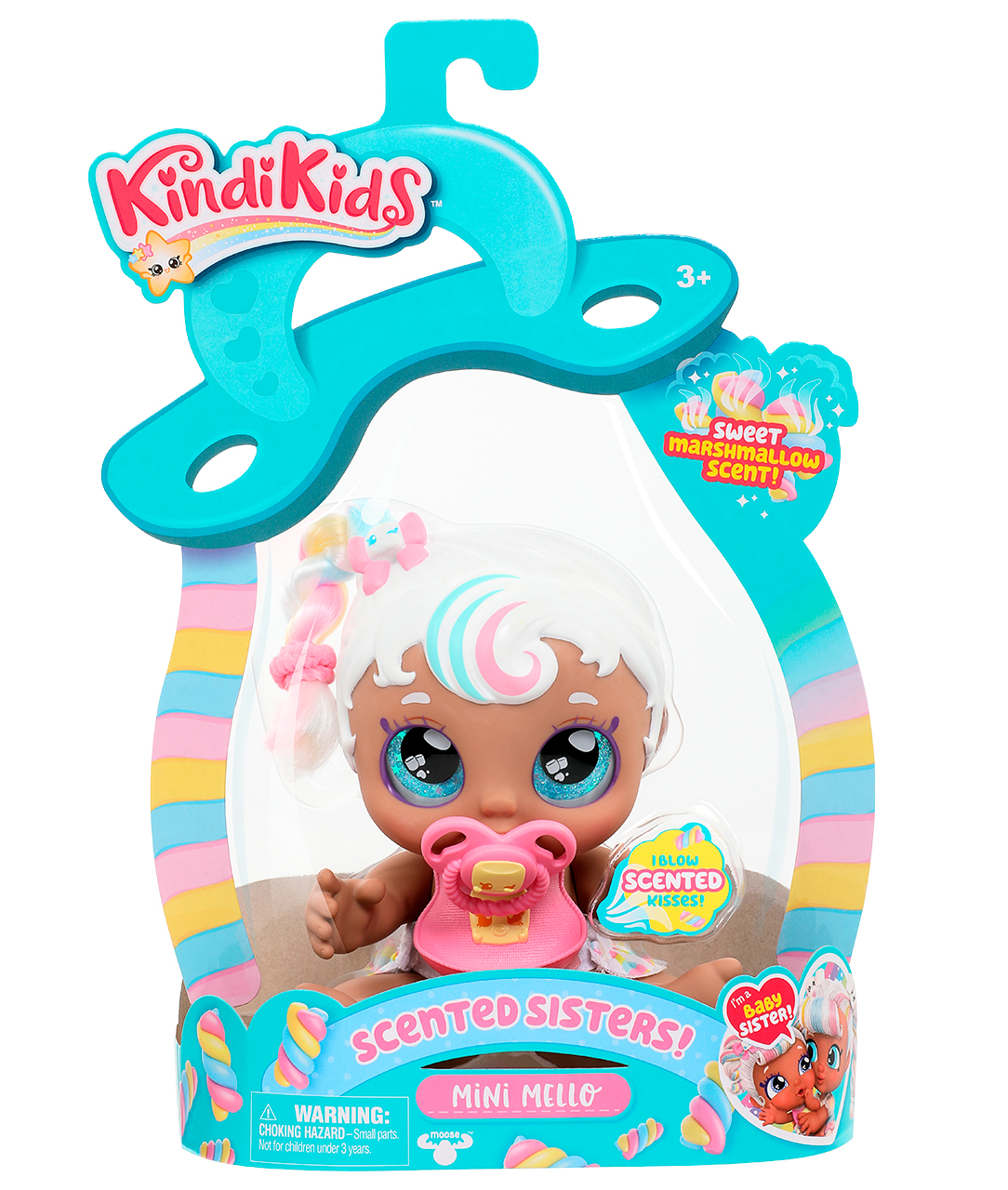 Передайте привет Mini Mello. Она младшая сестра Марши Мелло! Mini Mello движется с бешеной скоростью в минуту! Эта мягкая малая думает, что дремать – это терять время, поэтому она очень бодрая и всегда двигается. В той же стилистике, что ее старшая сестра, эта милая девочка пахнет! Сожмите животик Mini Mello, и она подарит вам поцелуй с ароматом зефира! Как у всех детей Кинди, у нее большие блестящие глаза.