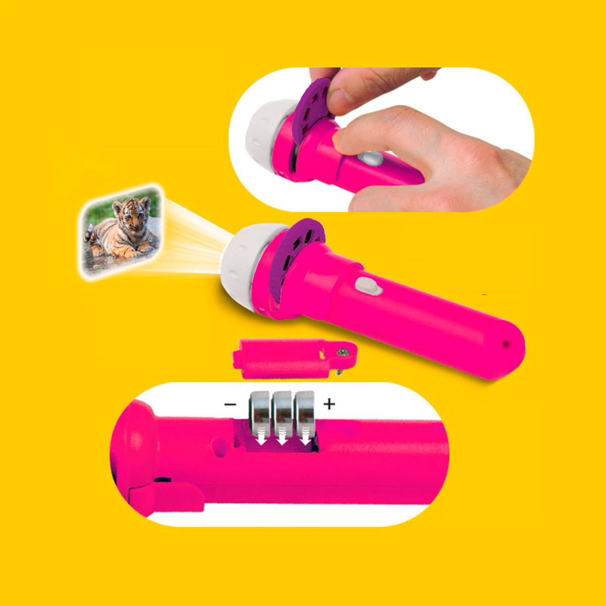 - В комплекте с фонариком есть 3 диска с цветными изображениями 24 разных очаровательных животных.