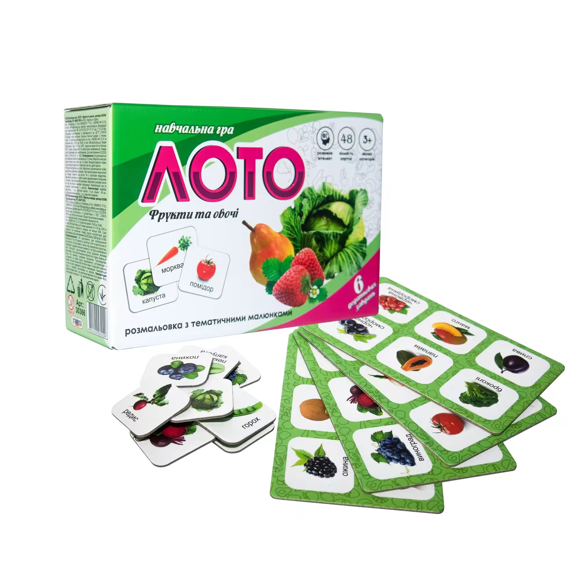 «Лото – Фрукты и овощи» – настольная обучающая игра, которую любят не только маленькие дети. Отойдя от классического варианта, ребенок сможет познакомиться не только с буквами, но и с видами фруктов и овощей, накрывая на карточках необходимые картинки. Играя с лото, малыш выучит новые слова и расширит свой кругозор. Не останутся без внимания такие навыки, как внимательность, усидчивость и моторика рук. В игре «Лото – Фрукты и овощи» Strateg (30366) есть дополнительные задания и раскраска.