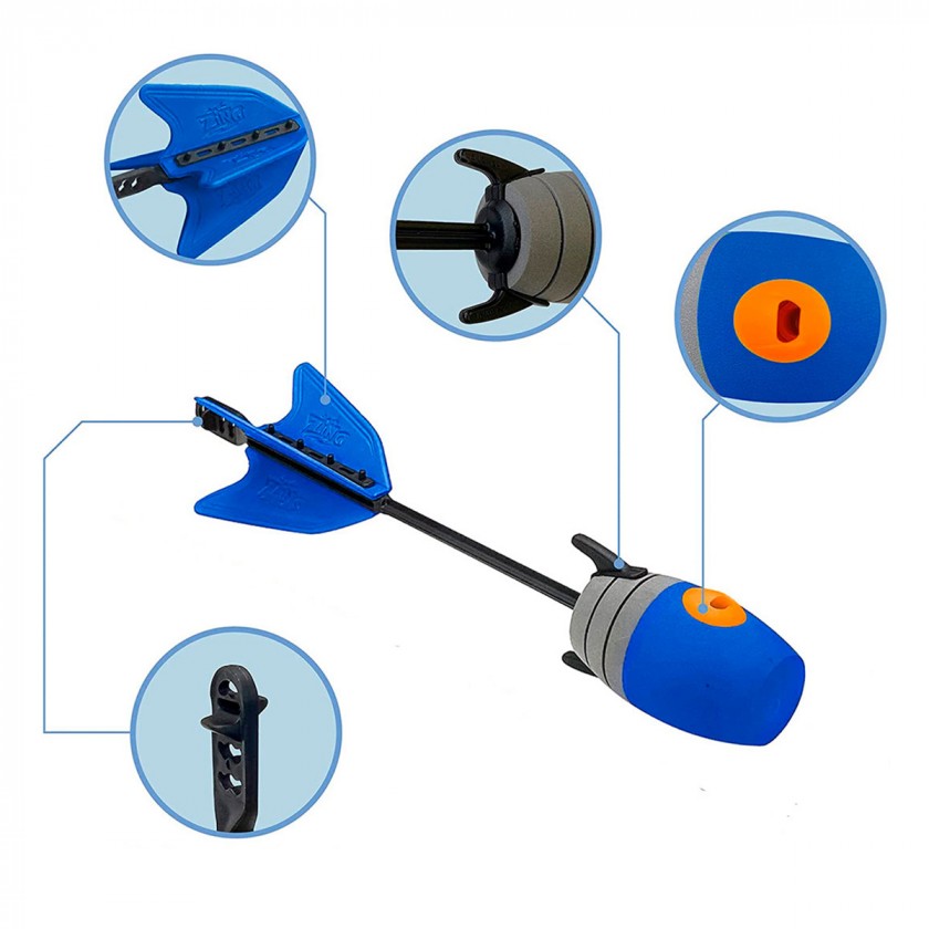 Особенности лука Zing HyperStrike Target:запатентованная технология запуска; быстрая перезарядка гарантирует преимущество в битвах; стрела летит на расстояние до 75 м; лук оснащен усиленным шнуром из низкопрофильной резины, который легко оттягивается, обеспечивая большую мощность; внутри каждой стрелы есть свисток, поэтому они издают звуки при полете; в комплекте: 1 лук, 4 стрелы.