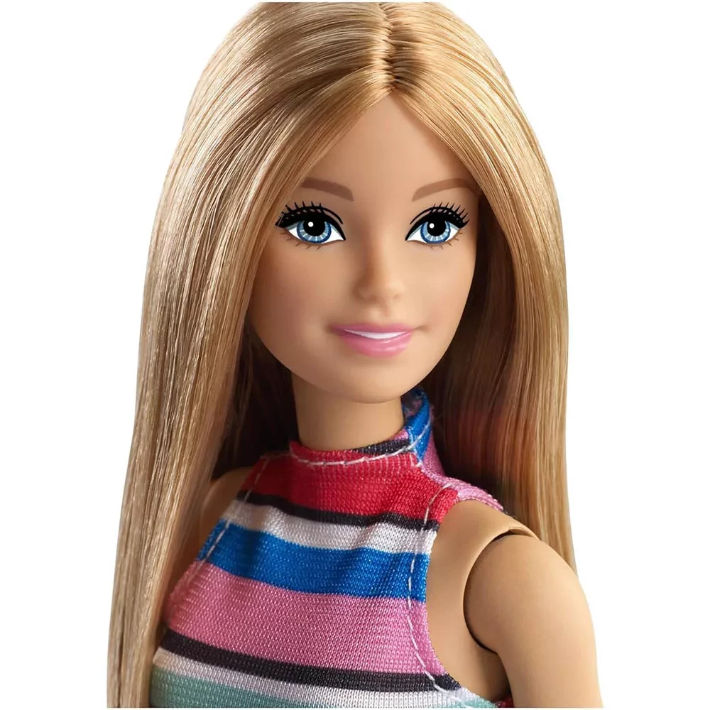 Кукла Barbie Модная коллекция обуви является частью серии кукол Barbie, ориентированной на моду и стиль. Эта кукла одета в стильный наряд: цветной топ без рукавов и джинсовую юбку.