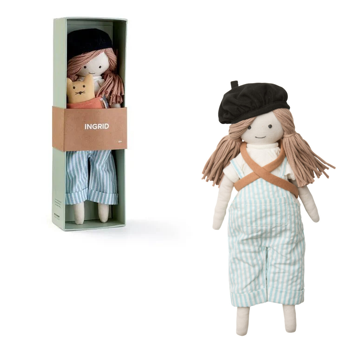 Мягкая текстильная кукла "Ingrid" от Kid’s Concept — уютная игрушка для самых маленьких. На её спинке находится маленький питомец в съёмном рюкзаке, что придаёт образу сказочность. Одежду и рюкзак можно снимать и надевать, что развивает мелкую моторику и воображение ребёнка. В комплект входит инструкция по созданию собственной одежды, доступная через QR-код на упаковке.