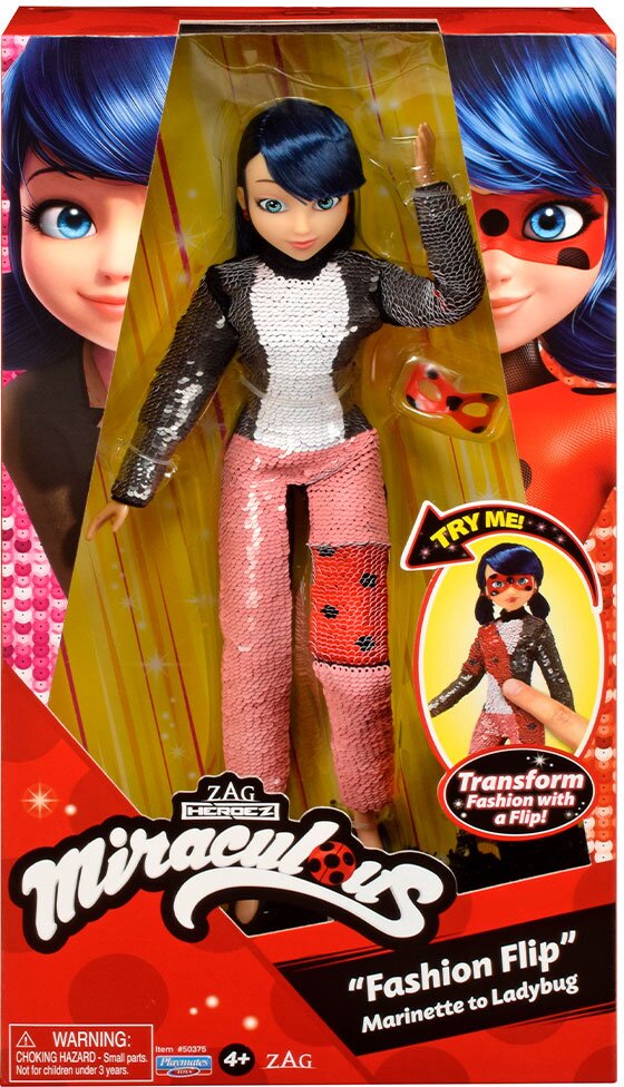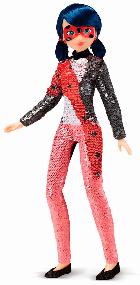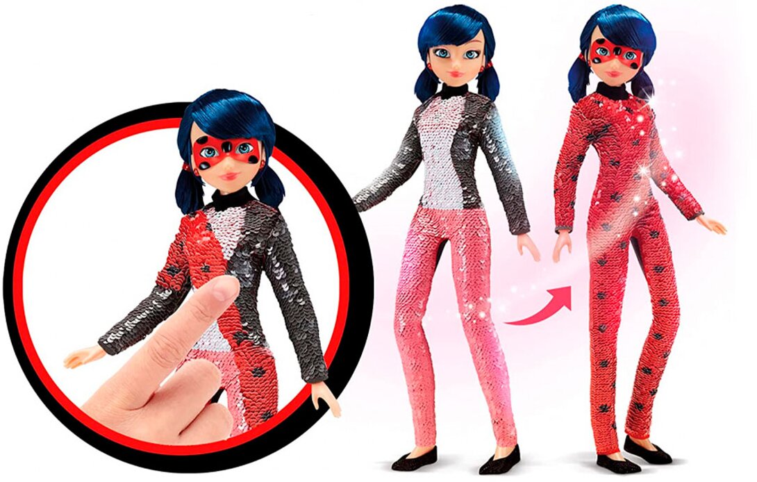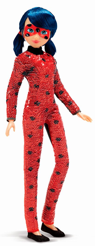 Присоединяйтесь к суперкоманде! Кукла Леди Бак и Супер-кот в костюме с пайетками — уникальна! Её костюм создан из волшебных пайеток: проведите рукой вверх — и наряд превратится в костюм Леди Баг, проведите вниз — и наряд превратится в повседневный костюм Маринетт. Самое быстрое превращение!