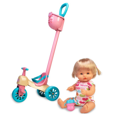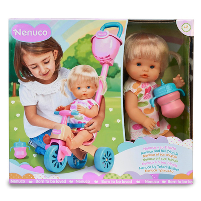 Кукла Nenuco С велосипедом-каталкой — милая белокурая девочка, которая непременно понравится малышам.