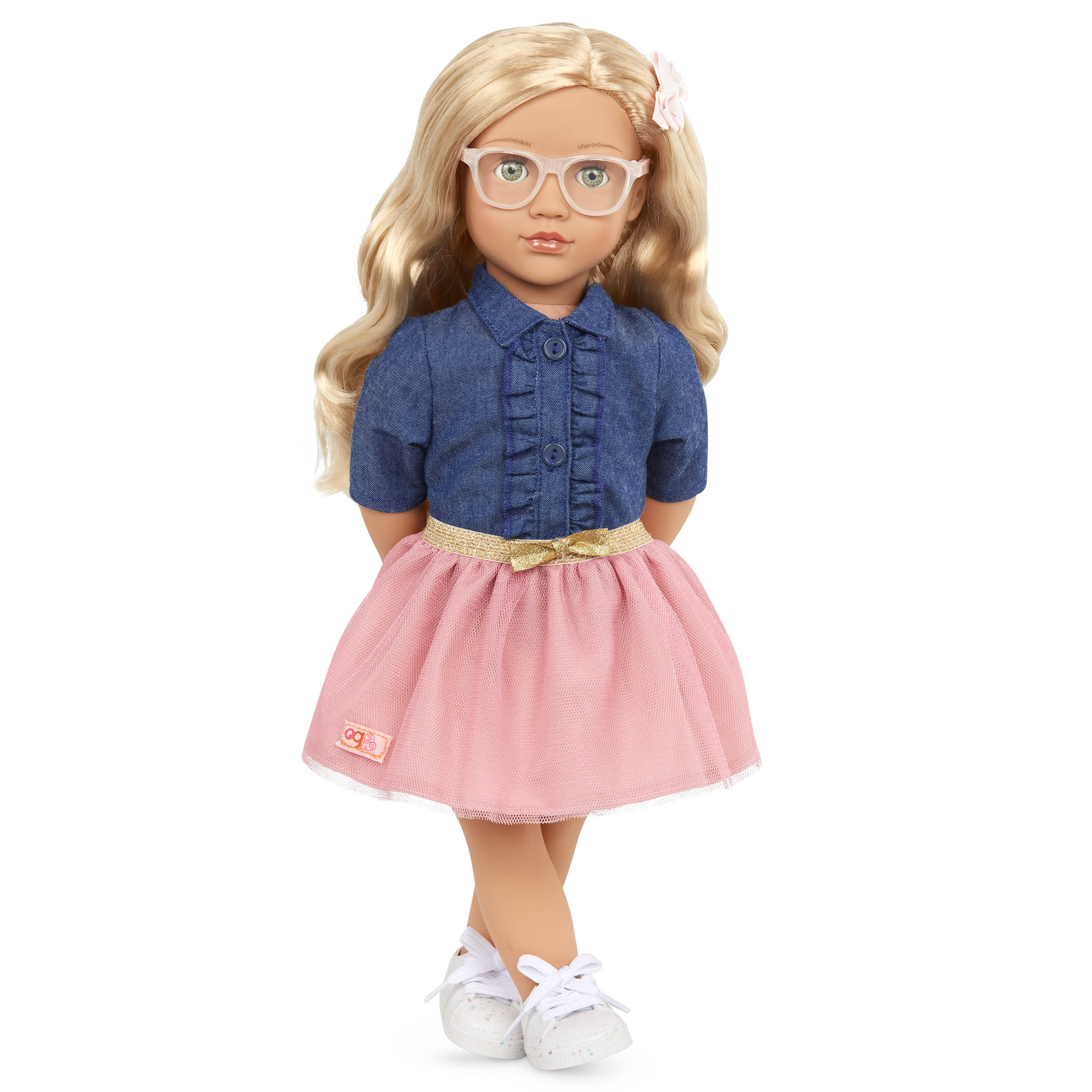 Our Generation Эмили – стильная 46-сантиметровая кукла, которая очарует детей своим модным образом и реалистичными деталями. Она имеет открывающиеся и закрывающиеся светло-зеленые глаза, а ее длинные светлые волосы с легкими волнами можно расчесывать и укладывать в разнообразные прически. Благодаря мягкому телу куклу удобно обнимать, а подвижные руки, ноги и голова делают игру еще интереснее.