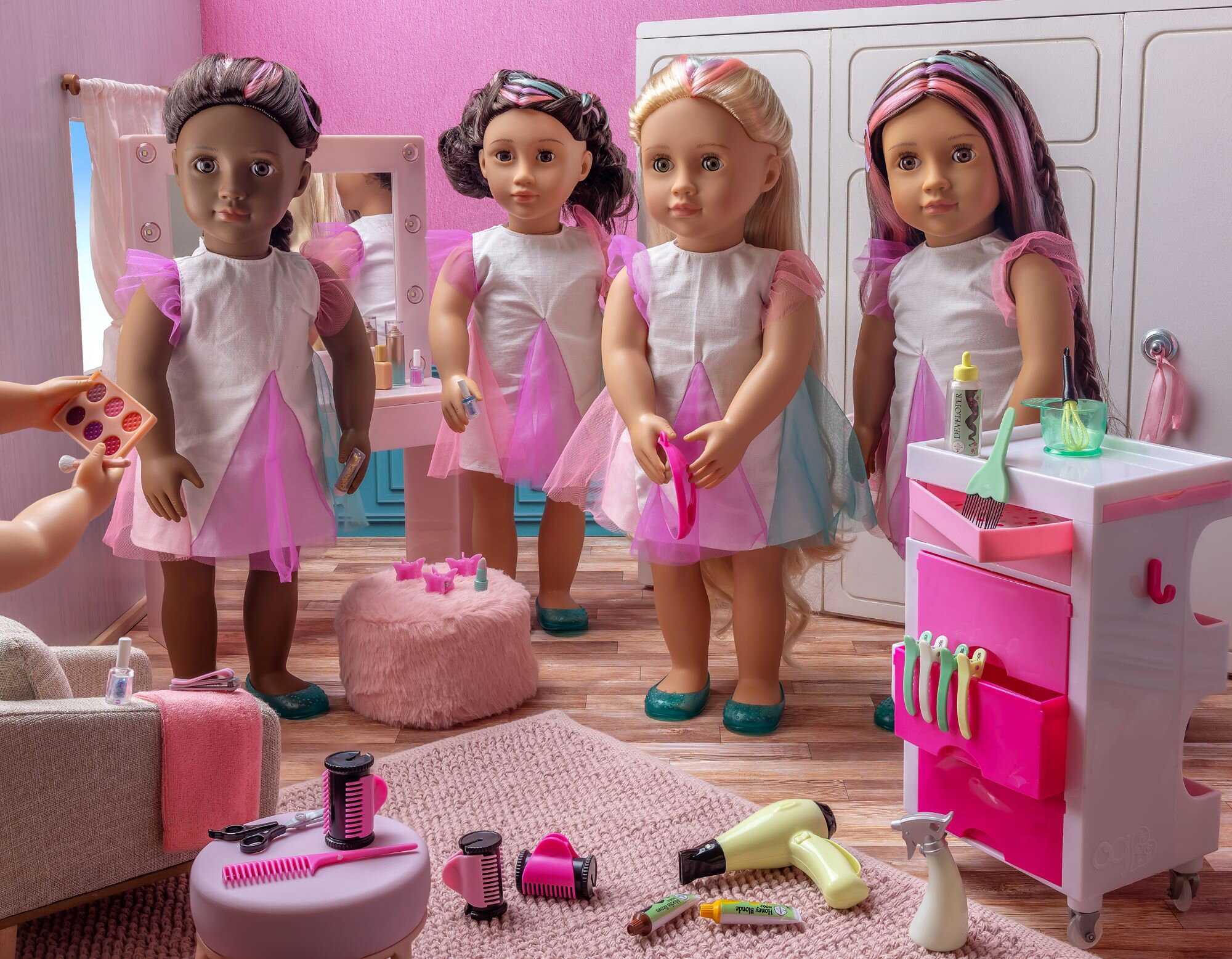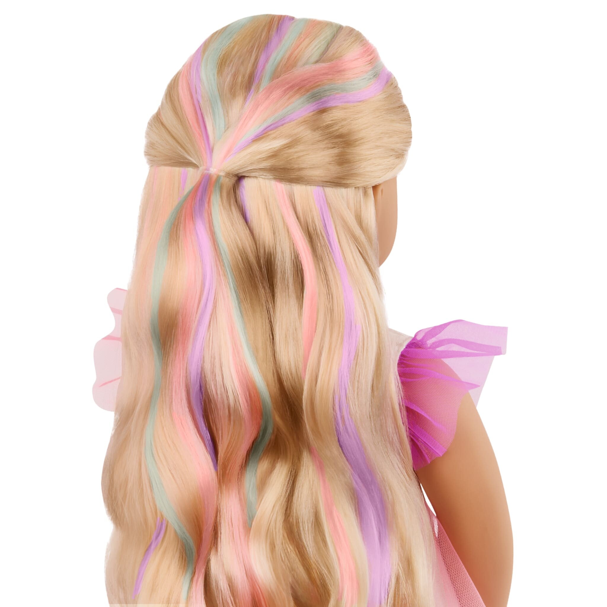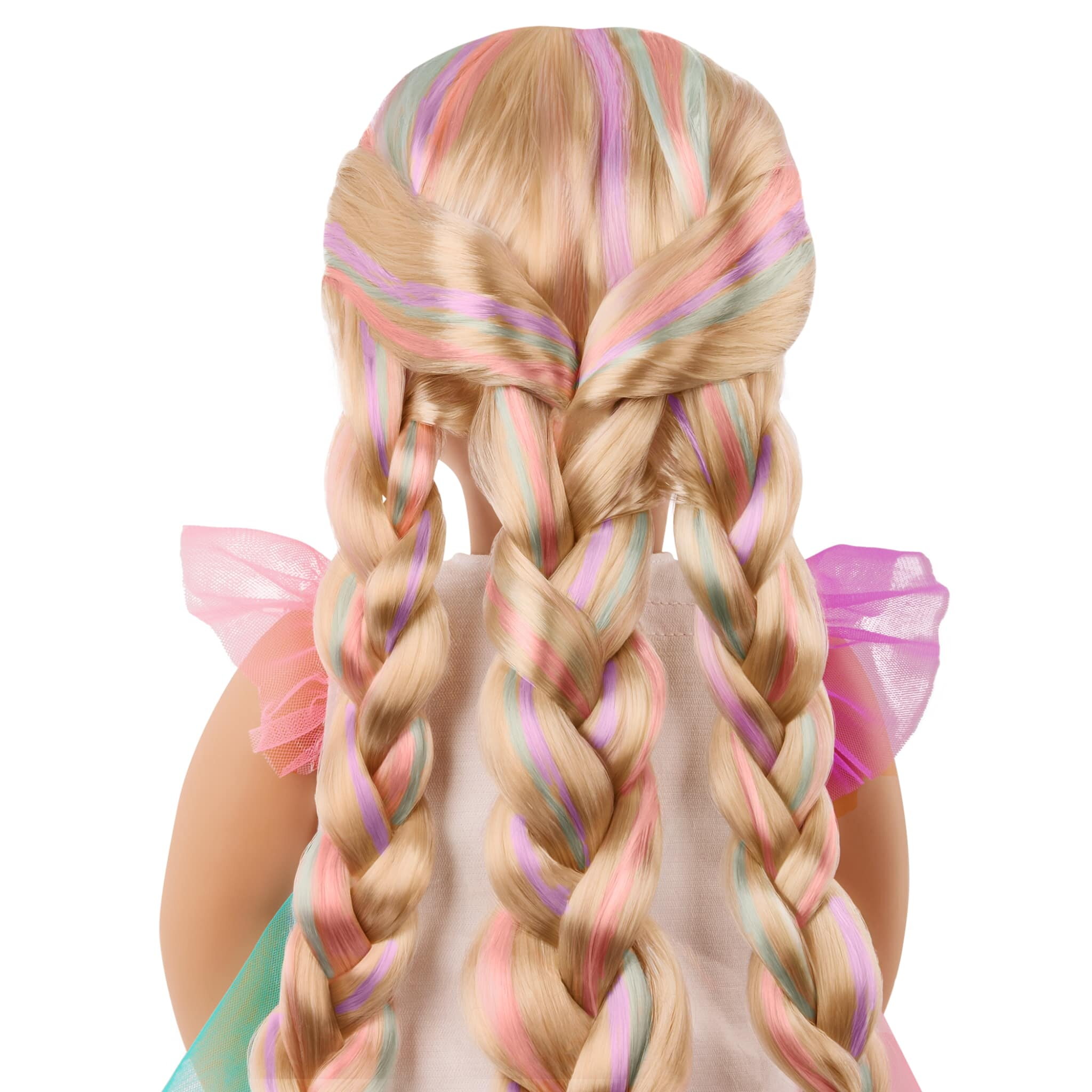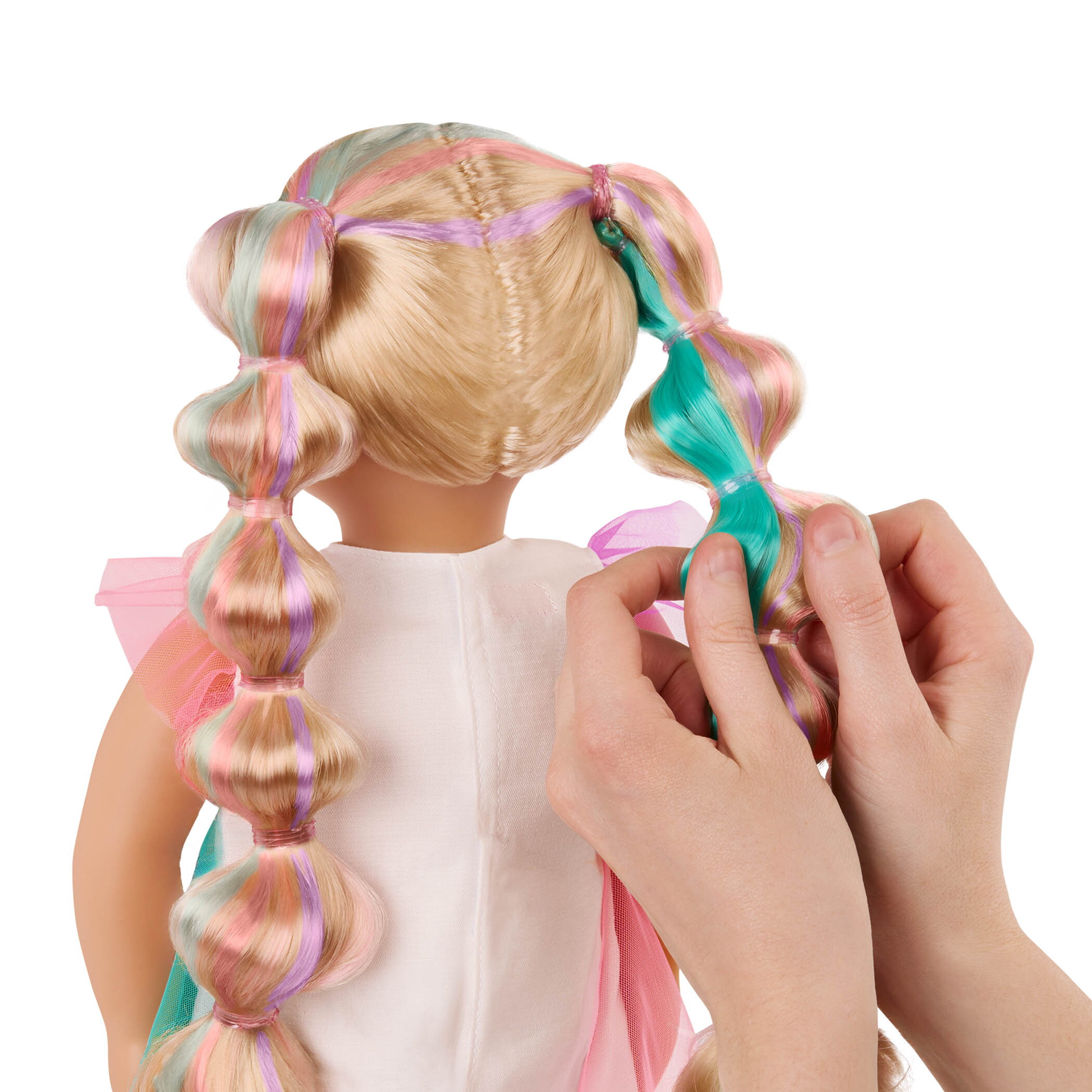 Заплетай, играй и создавай сказочные прически вместе с Тесси от Our Generation! Эта яркая 46-сантиметровая кукла имеет невероятные радужные волосы, которые можно укладывать, украшать и даже удлинять или укорачивать нажатием одной кнопки! Тесси – настоящая звезда причесок, вдохновляющая детей на творчество и самовыражение.