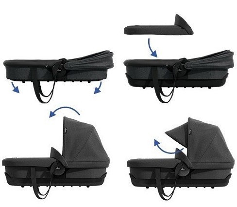 Люлька устанавливается на шасси с помощью адаптеров (в комплект не входят). Модель укомплектована мягким матрасиком со съемным чехлом и текстильной накидкой с удлиненным бортом для защиты ребенка от ветра. Просторный капюшон с большим козырьком защитит от любых прихотей погоды. Чтобы ультрафиолетовые лучи не попадали в коляску, предусмотрена дополнительная защита капюшона (уровень +50 UV).