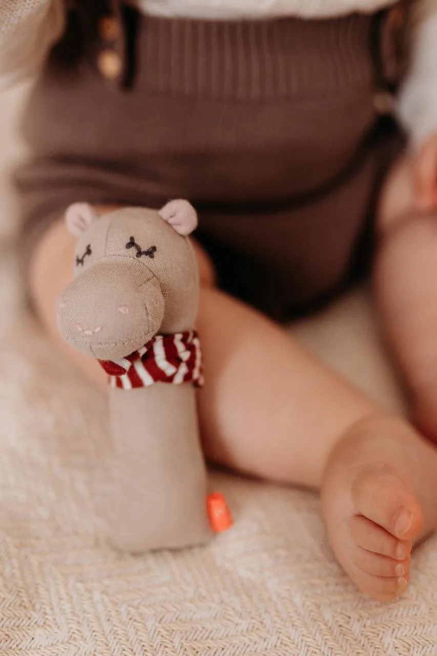 Мягкая игрушка-пищалка от немецкого бренда Kikadu создана для развития первых навыков младенца. Благодаря продуманной форме в виде стыка, ребенку удобно увлекать игрушку всей ладонью, что способствует укреплению мышц кисти и развитию координации движений.