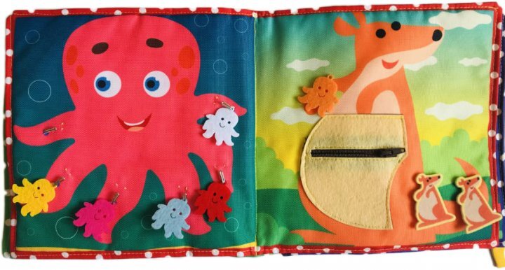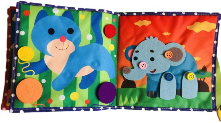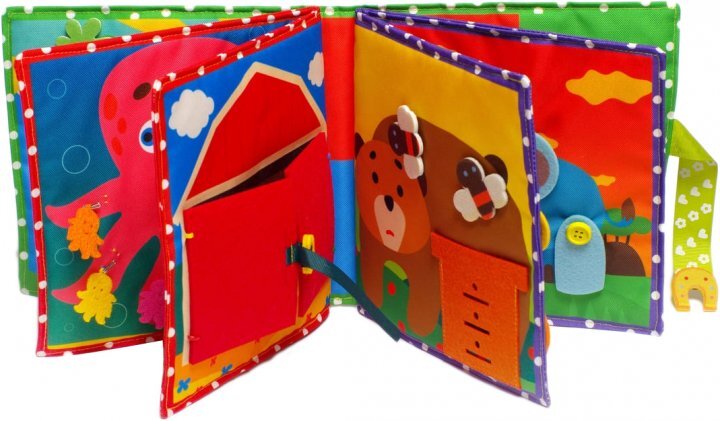 Это мягка книжка, которую можно стирать в стиральной машинке, если вдруг она запачкается. В ней безопасное крепление основных деталей.