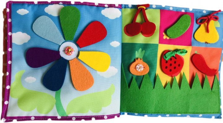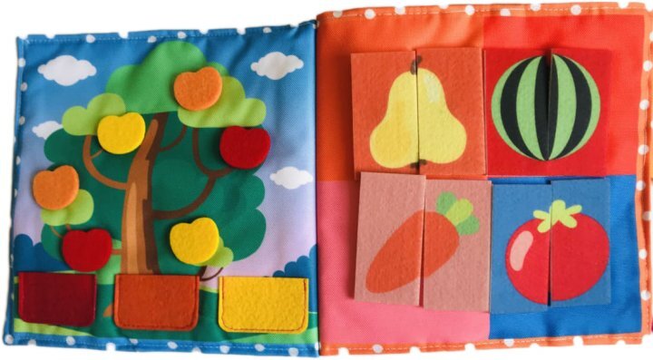 Книга из фетра достаточно компактная. С ней легко и интересно играть. Можна брать с собой в поездки или на прогулку в коляске. С помощью неё ваш малыш сможет освоить счет, буквы, времена года, фигуры , цвета и узнать много нового.