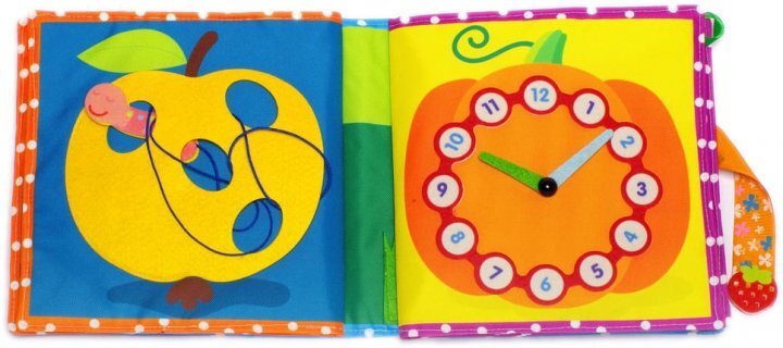 Это мягка книжка, которую можно стирать в стиральной машинке, если вдруг она запачкается. В ней безопасное крепление основных деталей.
