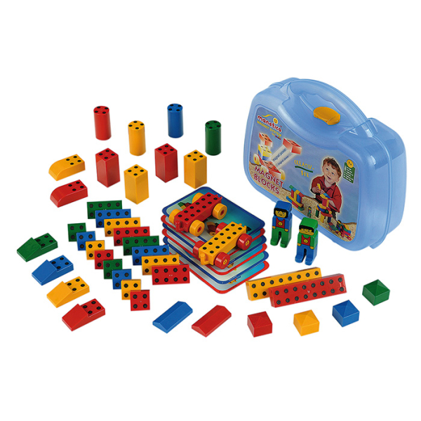 В наборе 42 разноцветных кирпичика различных форм, которые соединяются с помощью магнитов. Черные магнитные точки делают процесс сборки простым и увлекательным, позволяя легко и надежно фиксировать любые элементы друг с другом. Благодаря этому каждый замок, дом или фантастическая башня будет устойчивой и прочной!
