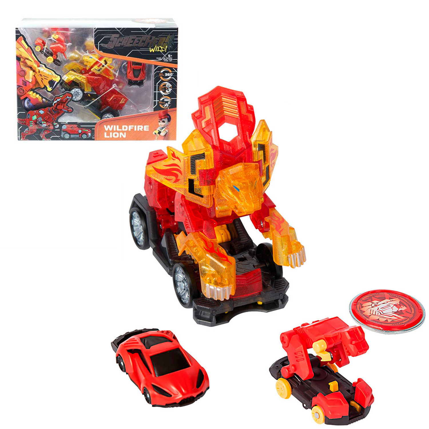 Машинка-трансформер Screechers Wild (Скричерс Вайлд) S4 L3 Уайлдфаер Лайен трансформируется в фантастическое существо прямо в воздухе.
