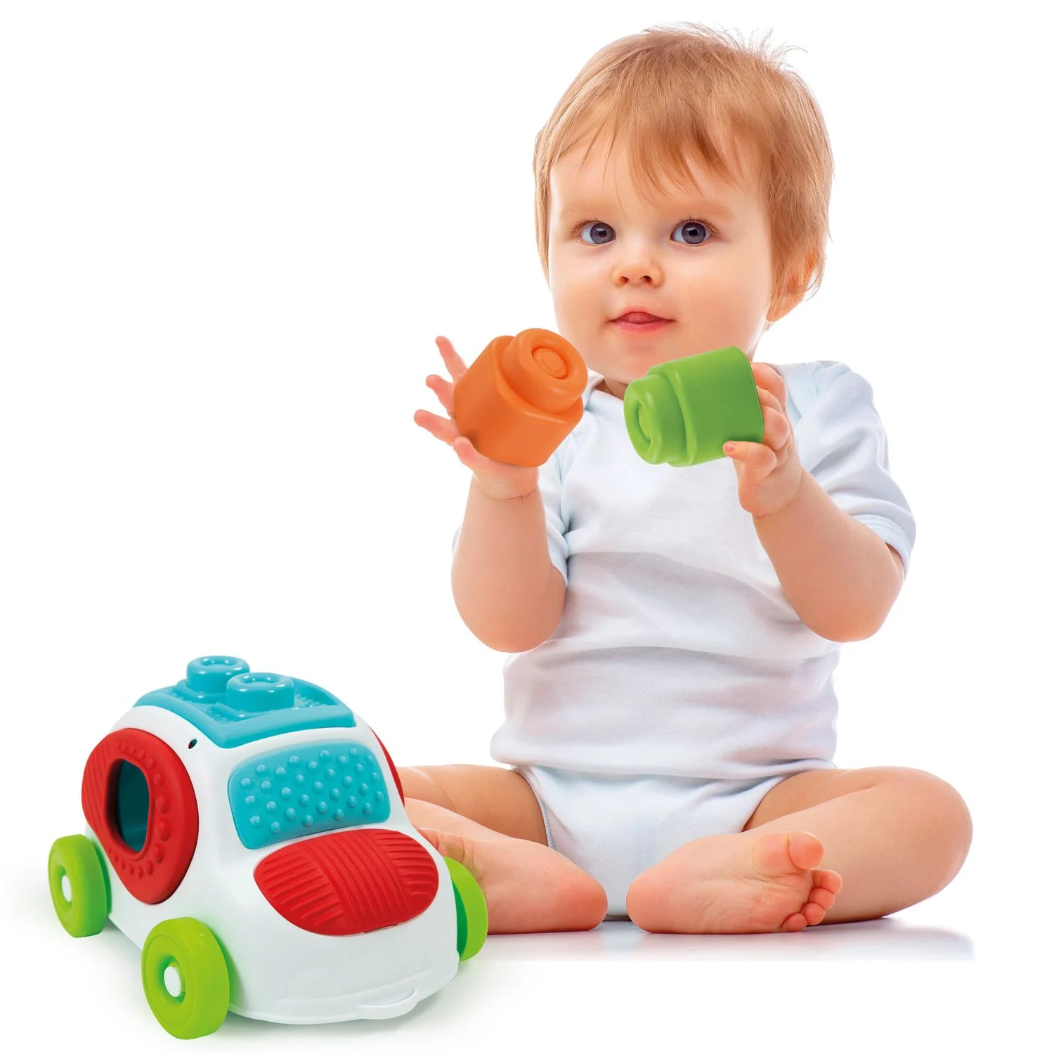 Clementoni "Sensory Car" – это игровой набор с мягким конструктором и рельефной машинкой для мультисенсорного развития детей от 6 месяцев.