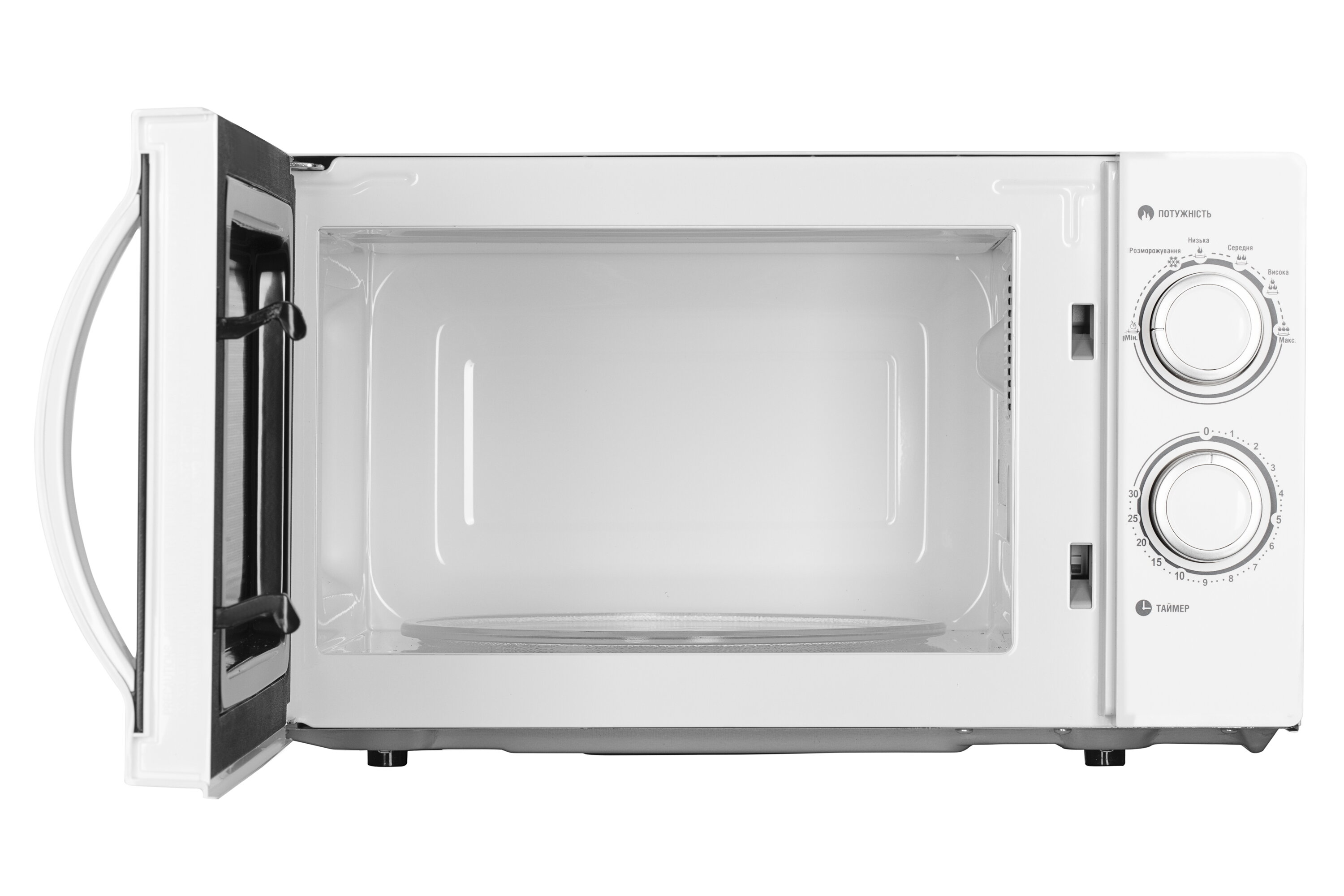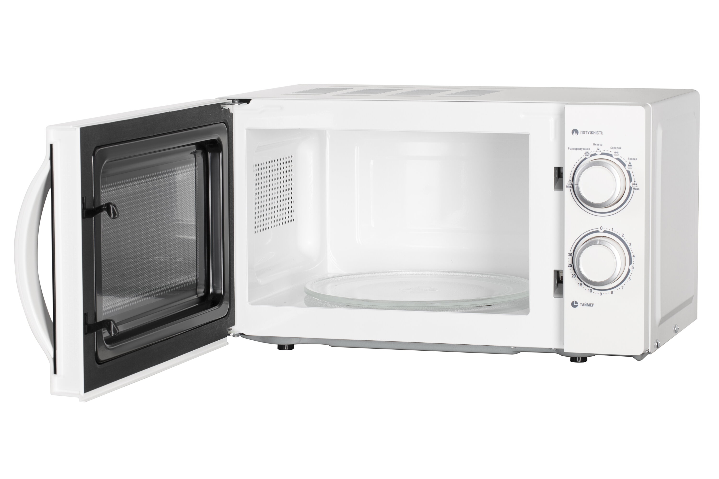 Эта микроволновая печь белого цвета идеально впишется в любую современную кухню. Благодаря мощности 700 Вт и внутреннему объему 20 литров вы сможете быстро разогреть еду для всей семьи. Мощность можно регулировать - есть 6 уровней. Тип управления удобный - механический. Диаметр ручки вращения - 245 мм, чего достаточно даже для объемных блюд. Дверца, открывающаяся сбоку, обеспечивает дополнительное удобство во время использования. Прибор экономичен в плане потребления электроэнергии.