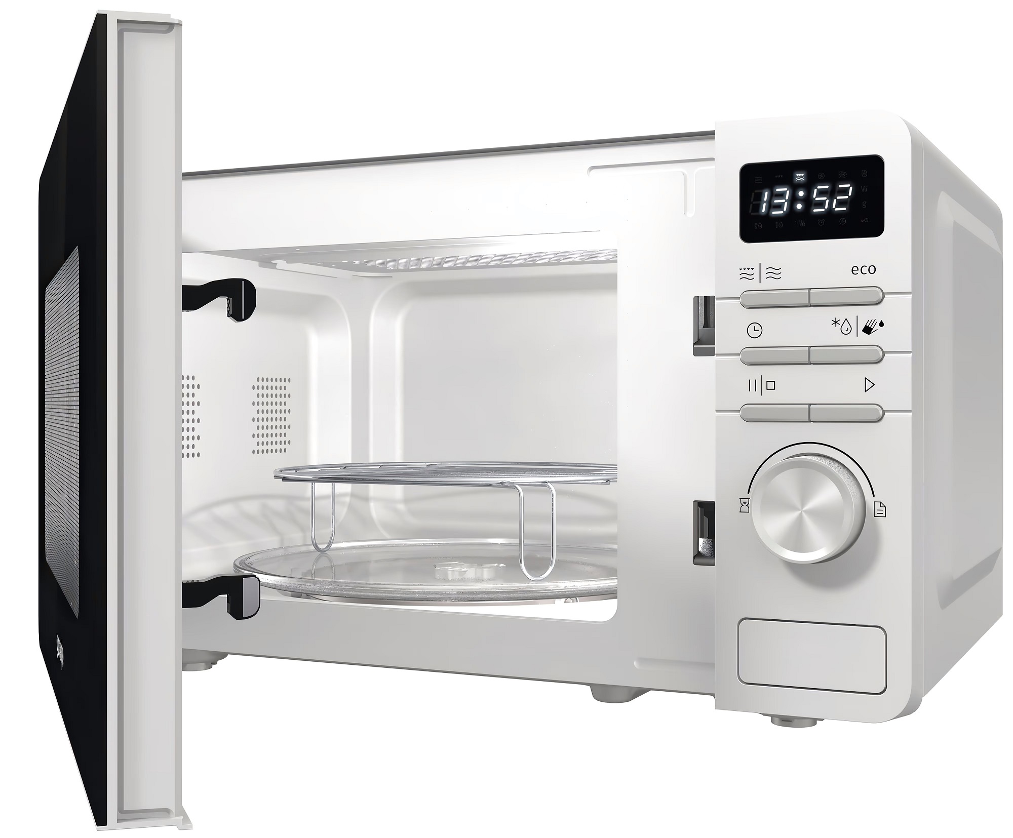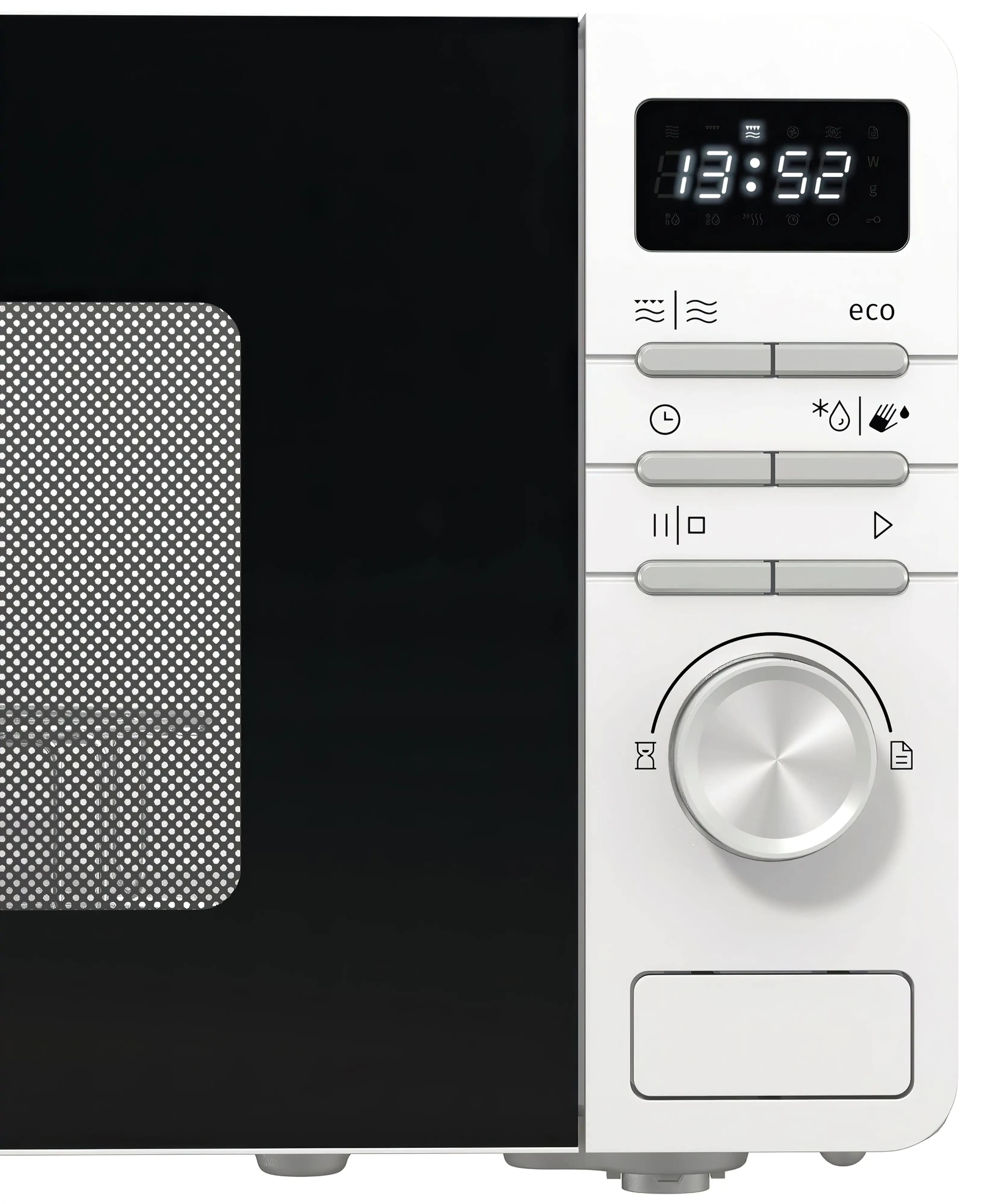 Микроволновая печь Gorenje MO20A3W — модель белого цвета с электронным управлением. Выбор режимов и настройка таймера производятся при помощи кнопок и поворотного регулятора. Специальные режимы подогрева блюд и тарелок, функция очистки AquaClean делают использование удобным. Прибор оснащен светодиодным освещением.