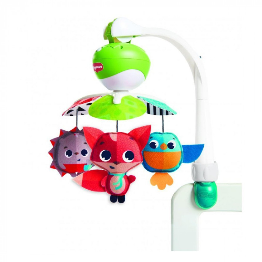 Мобиль на детскую кроватку или коляску – одна из первых развивающих игрушек для вашего малютки. Красочные карусельки над головой, несомненно, привлекут внимание крохи. Выбирая мобиль, обратите внимание на многофункциональную конструкцию Tiny Love 3 в 1 Веселая Поляна, которая поможет в развитии слухового восприятия, зрительных рефлексов и мелкой моторики крохи. Эта модель выполнена в симпатичном дизайне, с яркими красками. У нее есть специально разработанное крепление: консоль для кроватки, ремень на липучке и прищепка «крокодил».