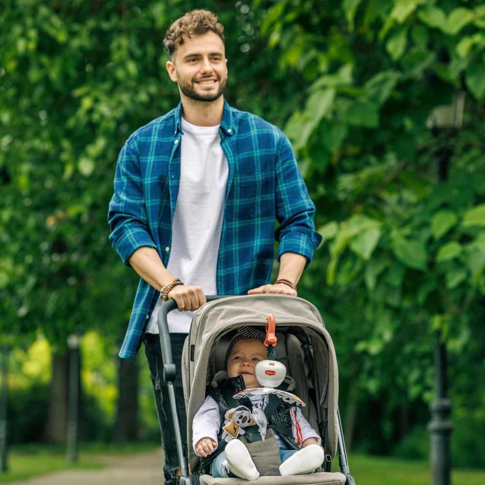 Если мобиль подсоединен к коляске и ребенок начинает проявлять признаки беспокойства, когда коляска движется, снимите мобиль на время поездки и прикрепите обратно, когда остановитесь. Если ребенок не реагирует на мобиль, слегка качните коляску, чтобы он заметил игрушку.