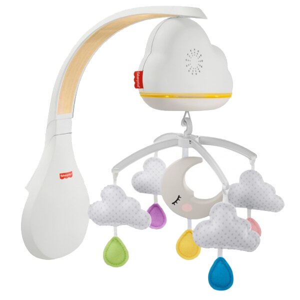 Музыкальный мобиль-ночник "Сказочные облачка" поможет ребенку легко уснуть и окунуться в удивительный мир сладких сновидений. Месяц и четыре приятные на ощупь облачка вращаются по кругу, привлекая внимание малыша, а 20 минут колыбельных мелодий и звуков природы успокаивают ребенка и способствуют быстрому засыпанию.