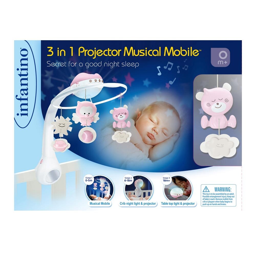 Мобиль с проектором Infantino 3 в 1 предназначен для малышей от рождения. Объединяет в себе функции светильника, музыкального мобильного устройства и проектора звездного неба.Оригинальный и стильный дизайн дополнит интерьер детской комнаты.