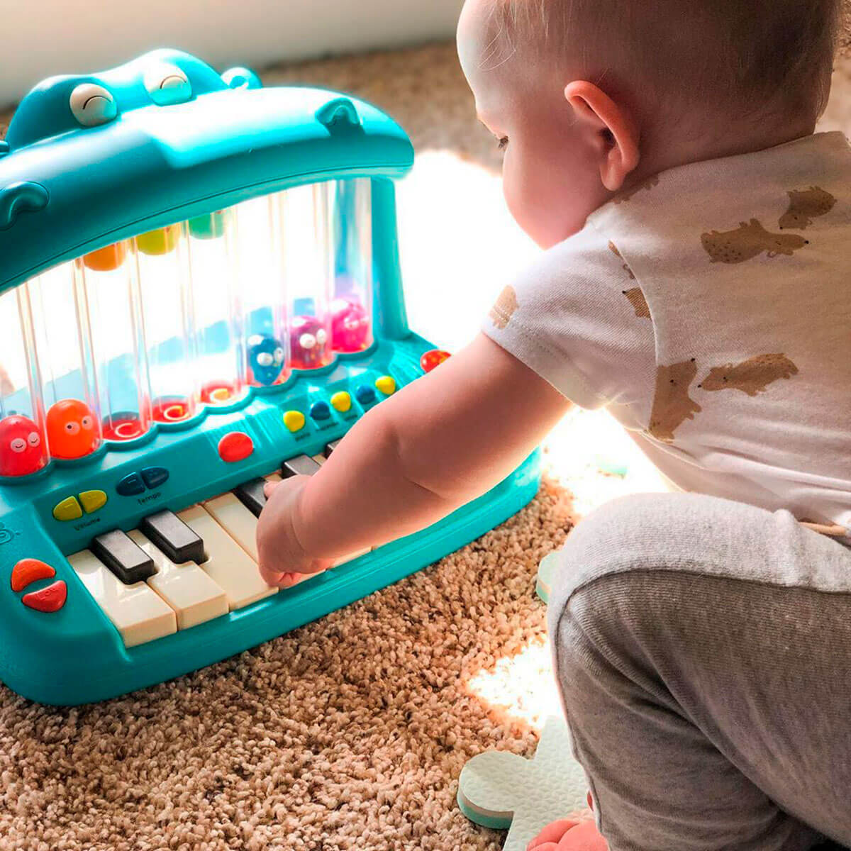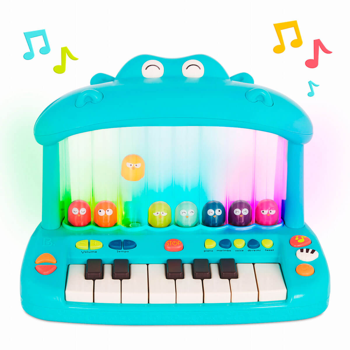 Веселье никогда не закончится с музыкальной игрушкой ГИППОПОФОН. Это игровое пианино обладает множеством забавных функций, которые может изучить Ваш маленький музыкант. Нажимайте на клавиши, чтобы увидеть, как птички светятся разными цветами и весело подпрыгивают. 26 звуковых эффектов, 15 забавных песен, 6 детских стишков на английском. 5 музыкальных режимов: пианино, маримба, голос, до-ре-ми, чириканье. Музыкальная игрушка поможет в развитии: музыкального слуха, креативности, воображения. Рекомендовано для детей старше 1 года.