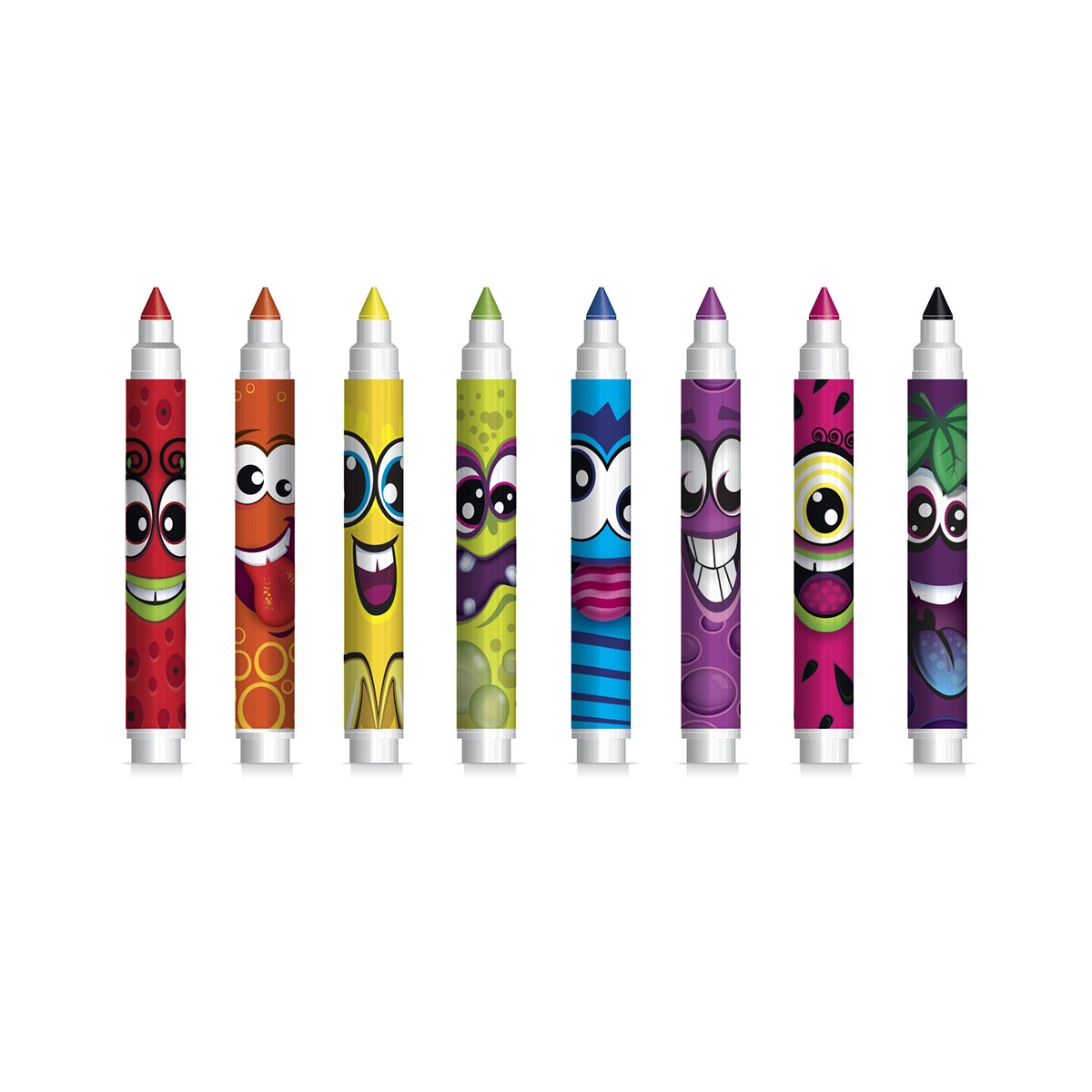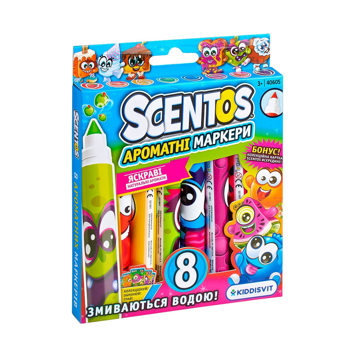 Scentos Плавная линия – набор для детского творчества, состоящий из 8 цветных маркеров. Упакован в яркую коробку с веселыми лицами. Маркеры не мажутся, приятно пахнут натуральными ароматами.