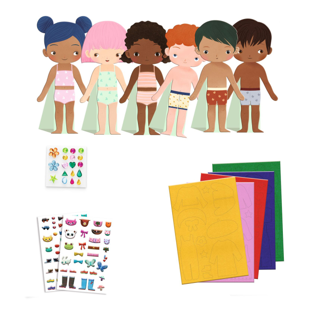 В этом наборе есть все необходимое, чтобы маленькие дизайнеры могли создавать стильные образы с помощью ткани, фетра и разнообразных декоративных элементов.