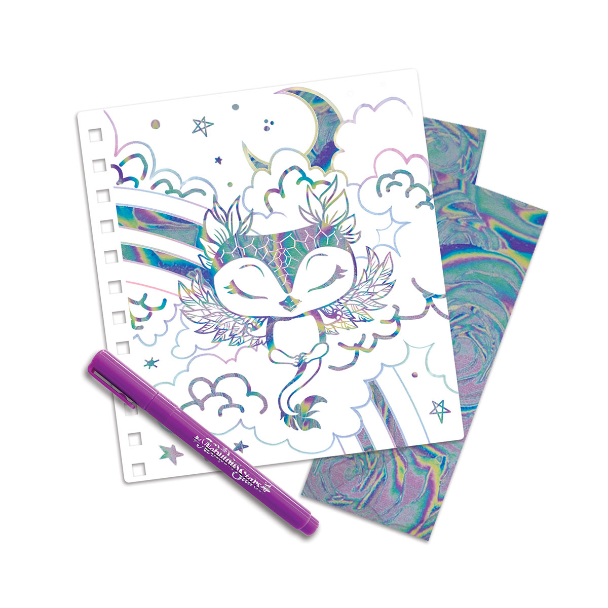 Почувствуйте себя звездным художником с набором для творчества NEBULOUS STARS — СКЕТЧБУК: ФАНТАЗИЙНОЕ ИСКУССТВО ИЗ ФОЛЬГИ! Вместе с подругой Айседорой и ее любимцем окунитесь в настоящий творческий полет, чтобы насладиться процессом создания фольгированных сияющих картин! Это так интересно и необычно!