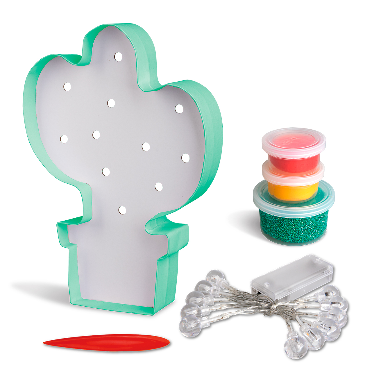 Набор для творчества Paulinda Сияющий Кактус – настоящая находка для творческих деток. Помните, как мы ждали, когда же засияют праздничные гирлянды? Ибо именно огоньки давали нам ощущение, что праздник близится. Но мир меняется, технологии усовершенствуются, и у современных детей есть игрушки, которые могут дарить праздничное настроение каждый день. Более того, дети могут сами создать такие игрушки. И в этом им помогут наборы для творчества Light UP. Можно выбрать одного из трендовых персонажей. Кто Вам нравится больше всего? Единорог, Альпака, Фламинго или экзотический Кактус? В каждом наборе все необходимое для создания завершенного шедевра – масса, инструменты, а также праздничные огоньки.