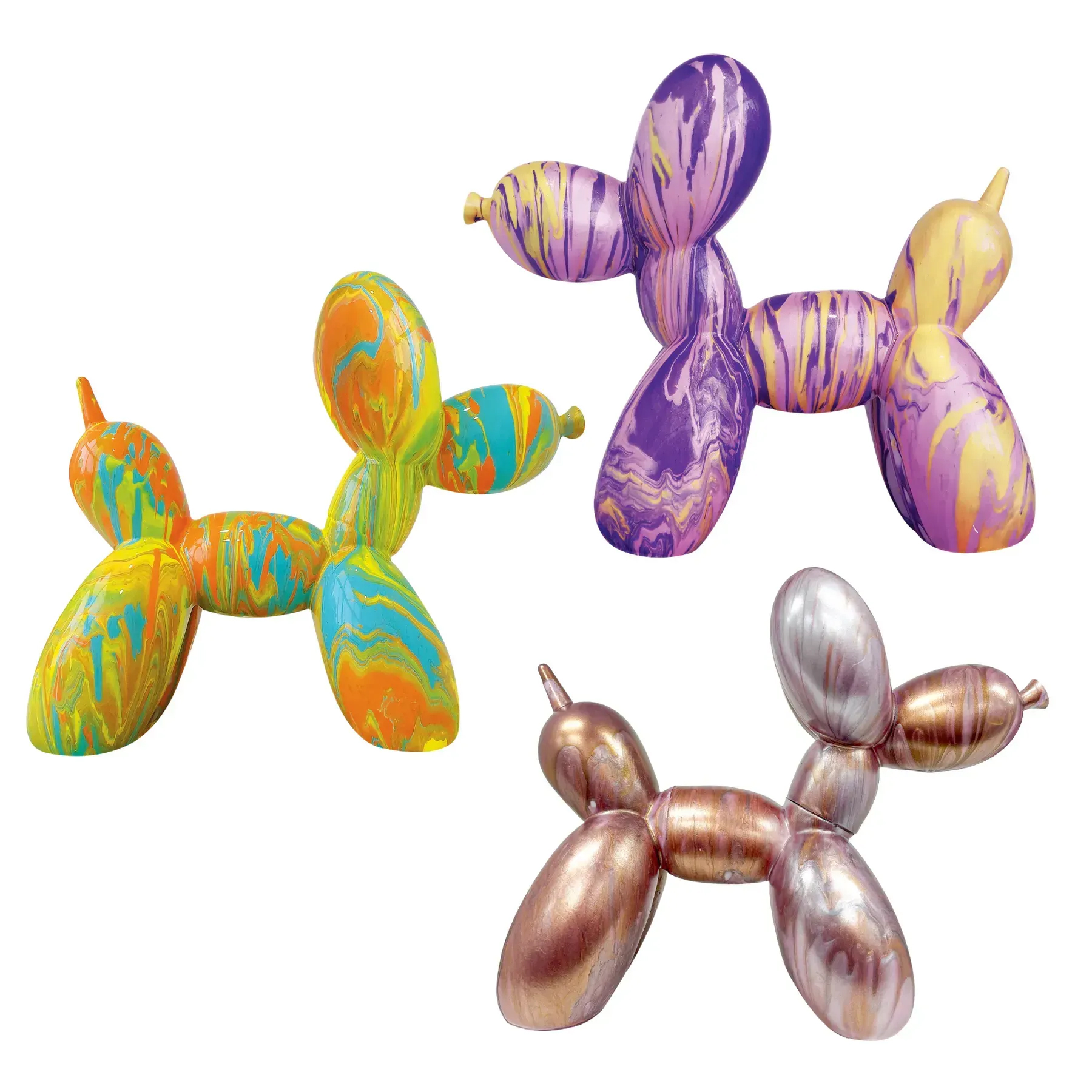 В наборе: игрушка Baloon Dog Pour Palz (высота 19,5 см), 3*60 мл краска (3-х цветов), салфетка, чаша для смешивания, аппликатор для краски, фартук, перчатки, инструкция.