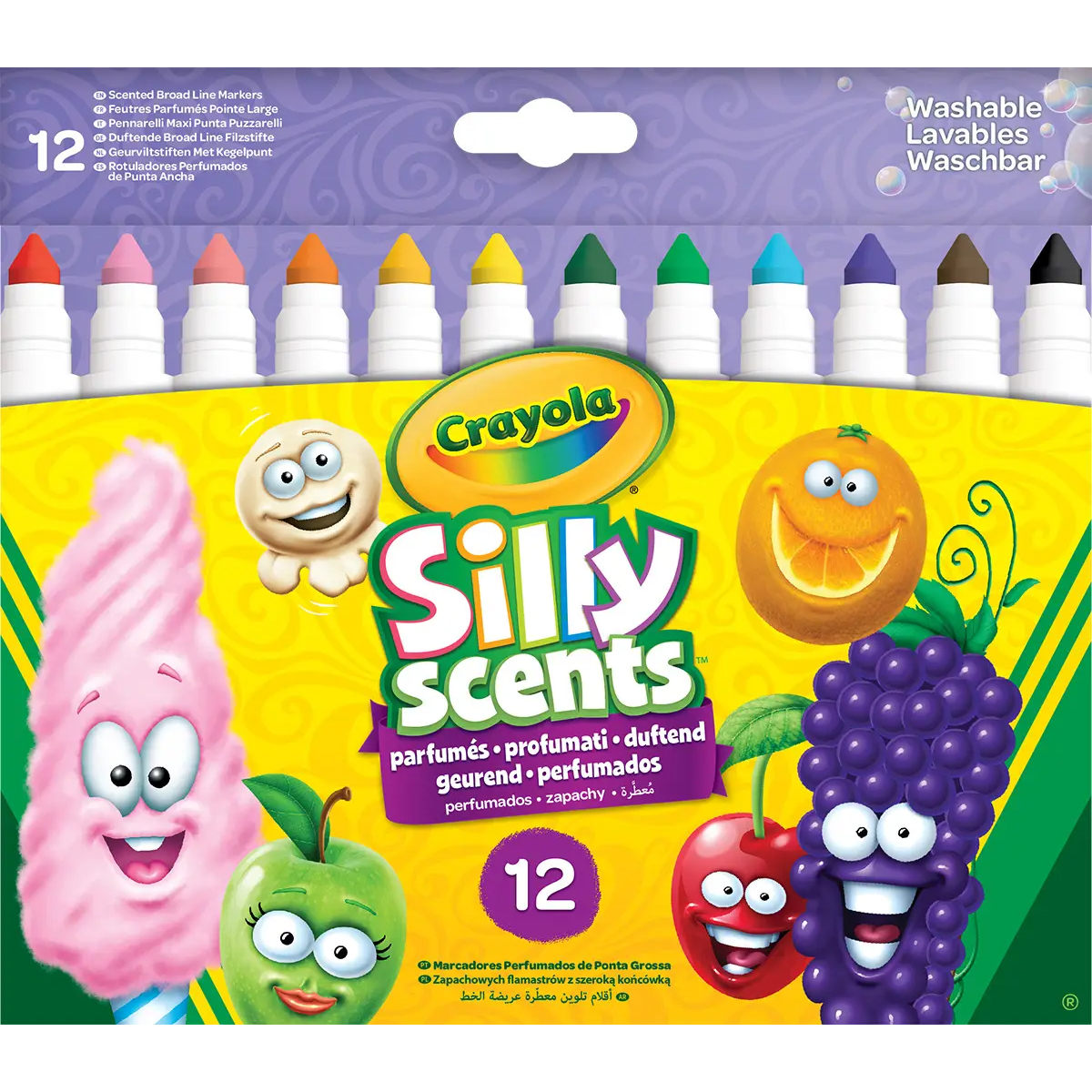 Crayola Silly Scents фломастеры с широкой линией наполнены 12 различными фруктовыми ароматами с яркими цветами! Подпитайте свое воображение смелыми красками и сладким запахом творчества! Запахи такие реальные, что ты не поверишь своему носу!