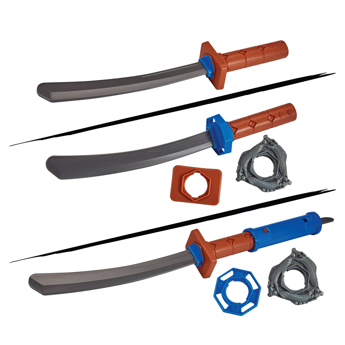 Когда злодеи атакуют, высвободи силу своей катаны, вставив игрушечное лезвие в рукоятку меча! Выровняй соединительные разъемы и кнопки, и поверни рукоятку, чтобы зафиксировать лезвие.
