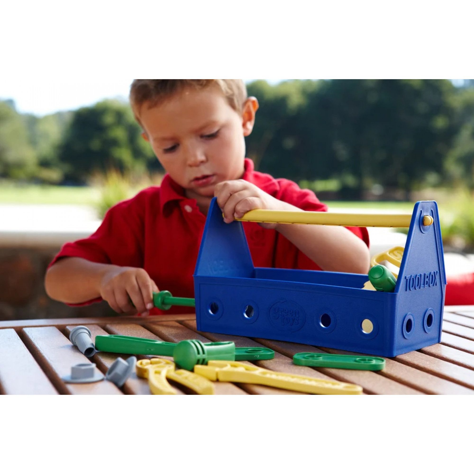 Этот потрясающий экологически чистый набор из 15 предметов включает в себя ящик для инструментов, крестовую отвертку, плоскую отвертку, молоток, пилу, гаечный ключ, плоскогубцы, 2 соединителя с двумя отверстиями, 2 гвоздя, 2 болта и 2 гайки. Набор инструментов Green Toys превращает работу в интересное развлечение!