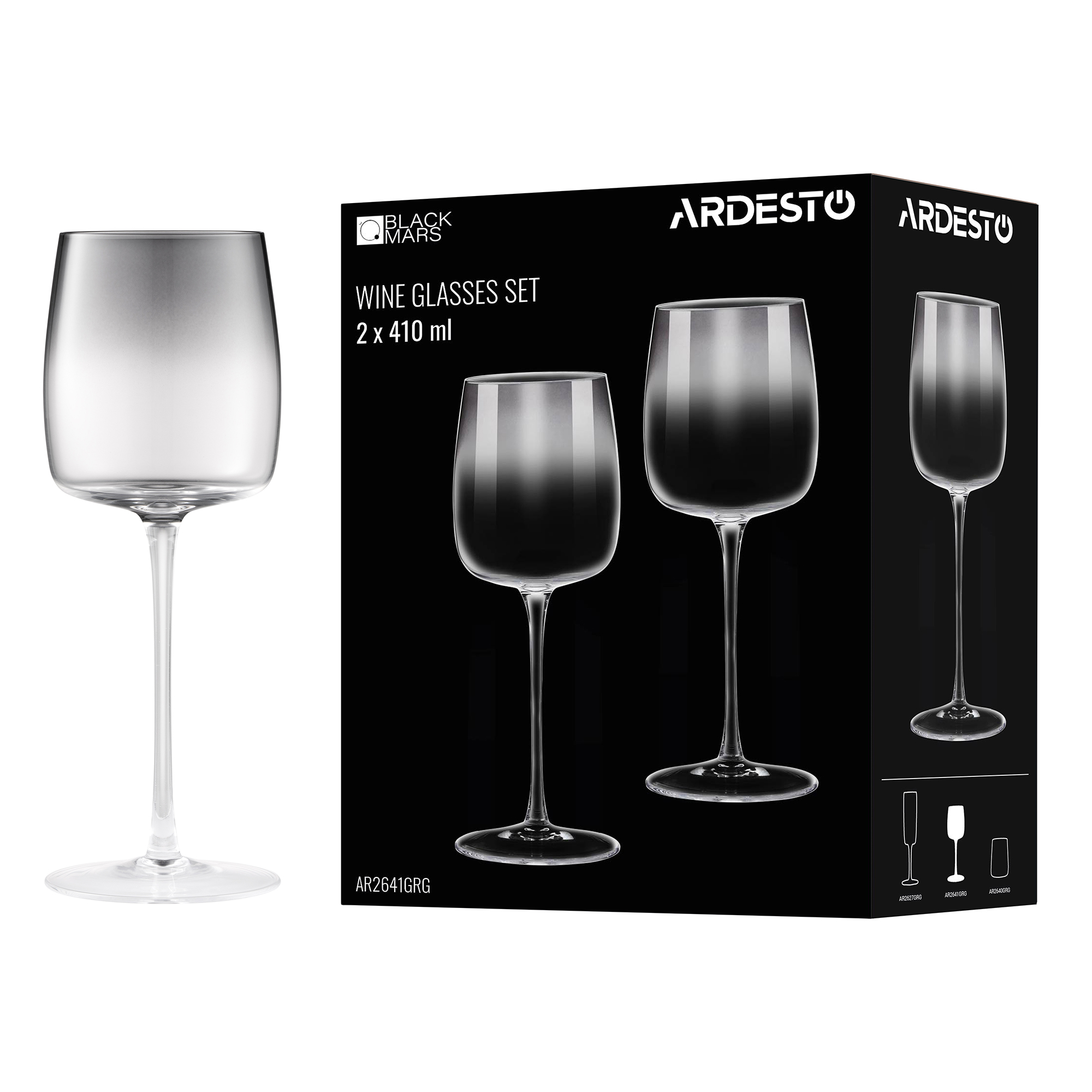 Элегантные бокалы для вина ARDESTO серии Black Mars созданы, чтобы подчеркнуть аромат и вкус напитка. Изысканные и современные формы подойдут к сервировке практически в любом стиле. В наборе два бокала объёмом 410 мл. Посуда изготовлена из серого стекла по специальной технологии, что обеспечивает длительный срок службы даже при частом использовании. Изделия не рекомендуется мыть в посудомоечной машине. Этот набор изысканных бокалов для вина станет отличным подарком для близких и друзей.