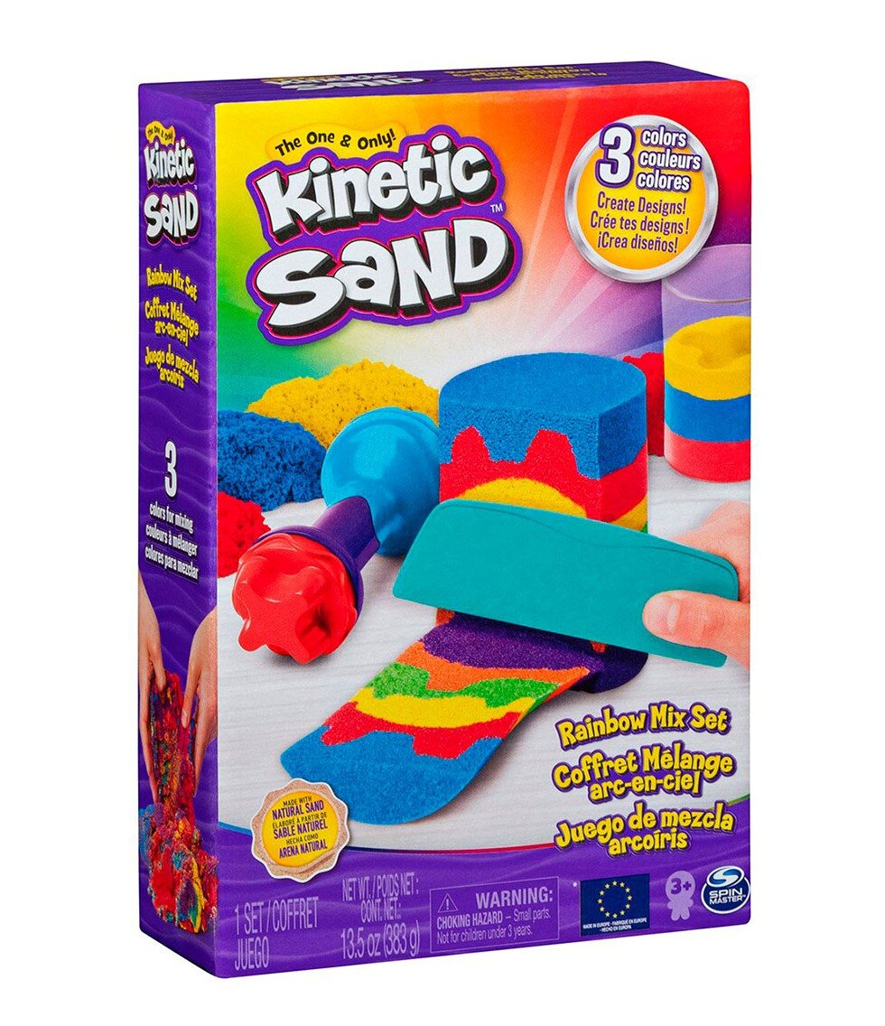 Набор кинетического песка - Kinetic Sand Радужный микс содержит все необходимое для смешивания и создания цветов радуги!Кинетический песок изготовлен из экологически чистых материалов - песка (98%) и специального связующего материала (2%), который создан для большей пластичности. Кинетический песок благоприятно влияет на развитие детской психики, снимает стресс, успокаивает. После игры с кинетическим песком все поверхности остаются абсолютно чистыми. Не растворяется в воде. Является неблагоприятной средой для размножения бактерий. Не вызывает аллергии и совершенно безопасен.