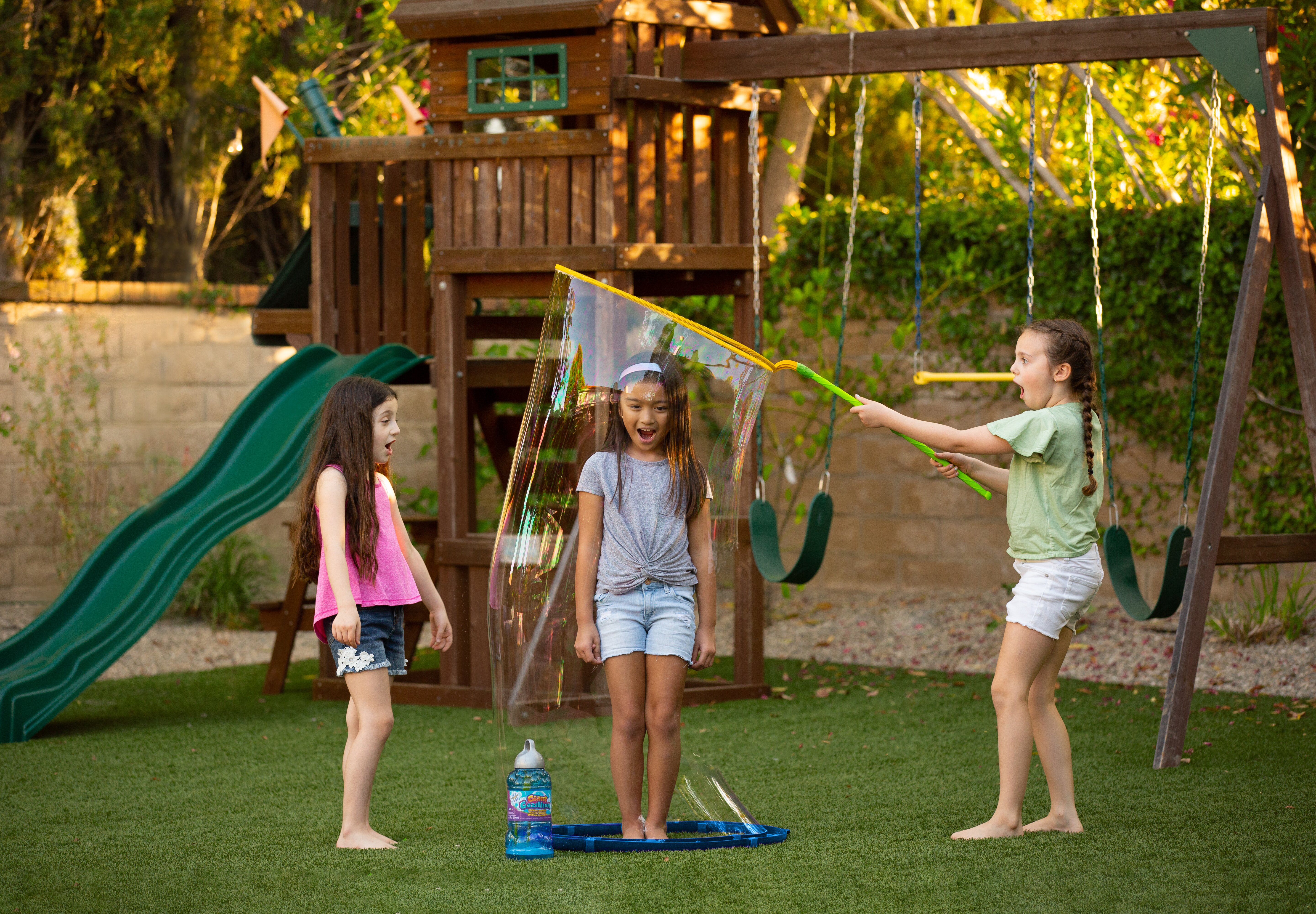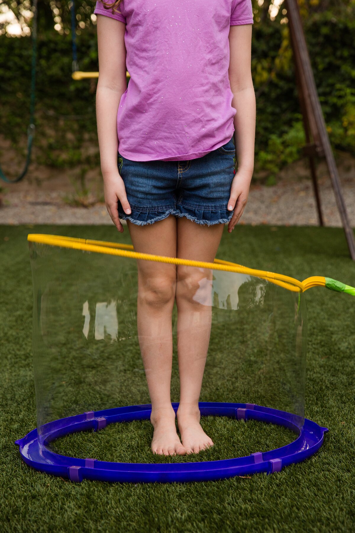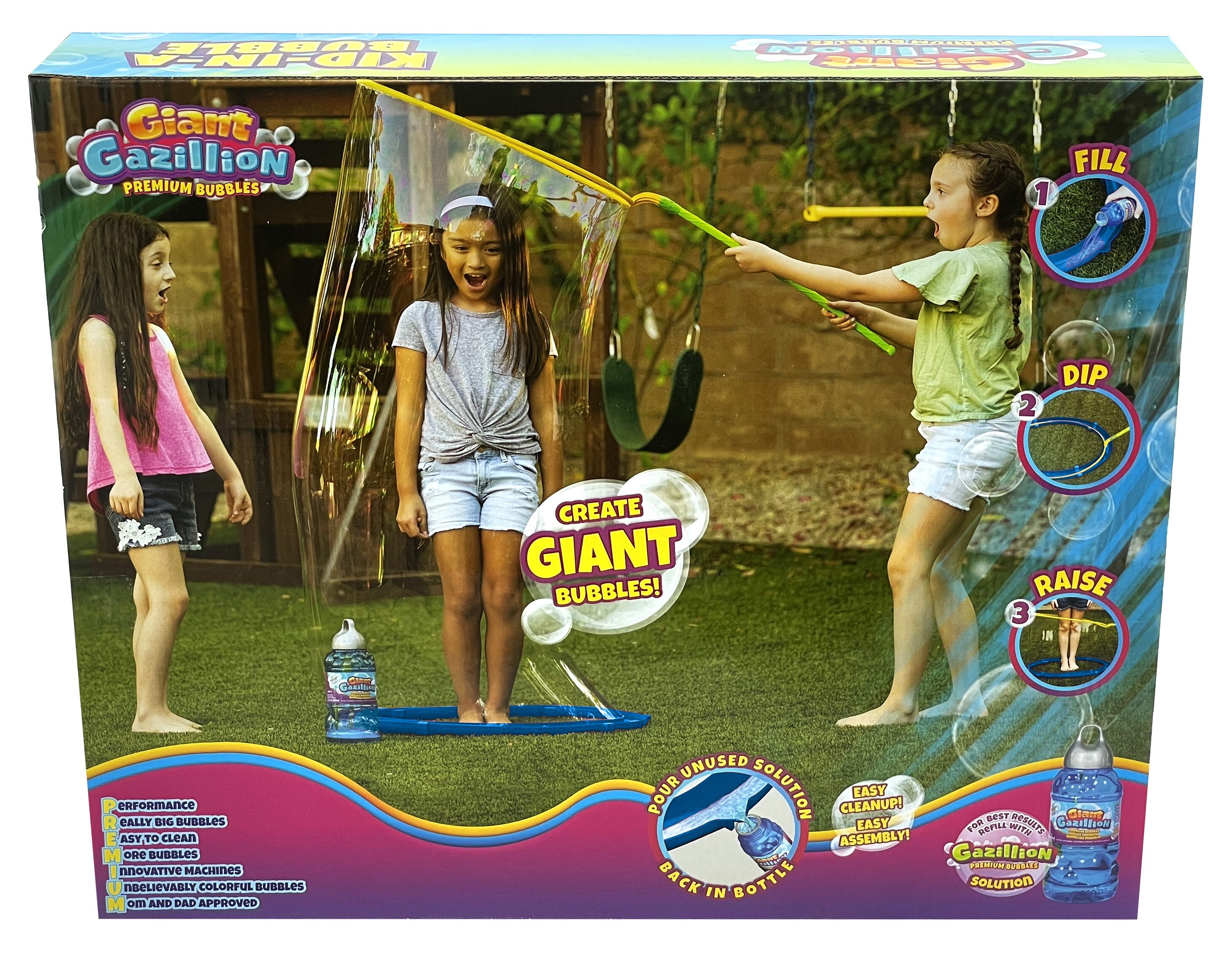С помощью Giant Gazillion Bubbles® Kid-In-A-Bubble вы можете создать пузырь настолько большой, что в него поместится ребенок! Просто заполните лоток раствором Giant Gazillion Bubbles Solution, опустите гигантскую палочку в лоток и осторожно поднимите вверх, чтобы создать гигантский пузырь!