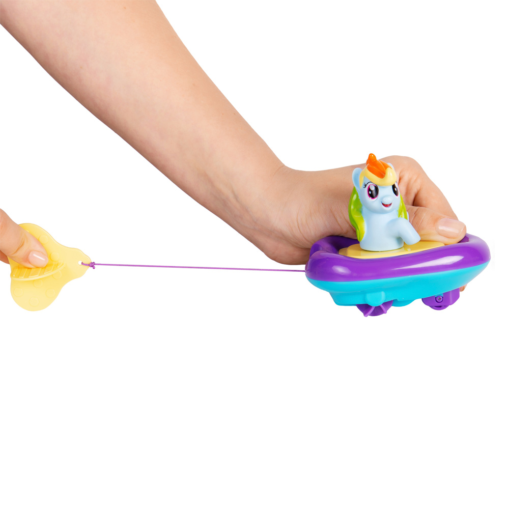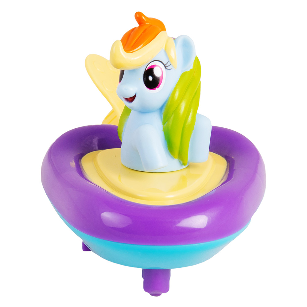 Комплект состоит из: кораблика с механическим заводом (для начала движения необходимо потянуть за веревочку);фигурки пони Рэйнбоу Дэш. Все части набора выполнены из сертифицированного и нетоксичного пластика.