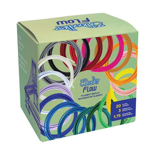 Набор стержней для 3D-ручки 3Doodler Flow Микс 20 цветов – это прекрасный набор, которого хватит на несколько моделей. Длина стержней достигает 3 метров.