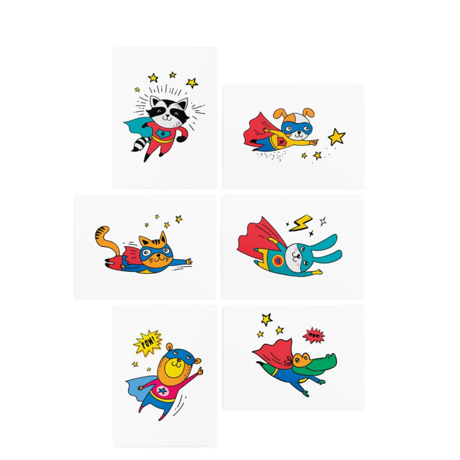 Погрузись в мир супергероев! Сет временных татуировок с яркими персонажами для детей любого возраста.