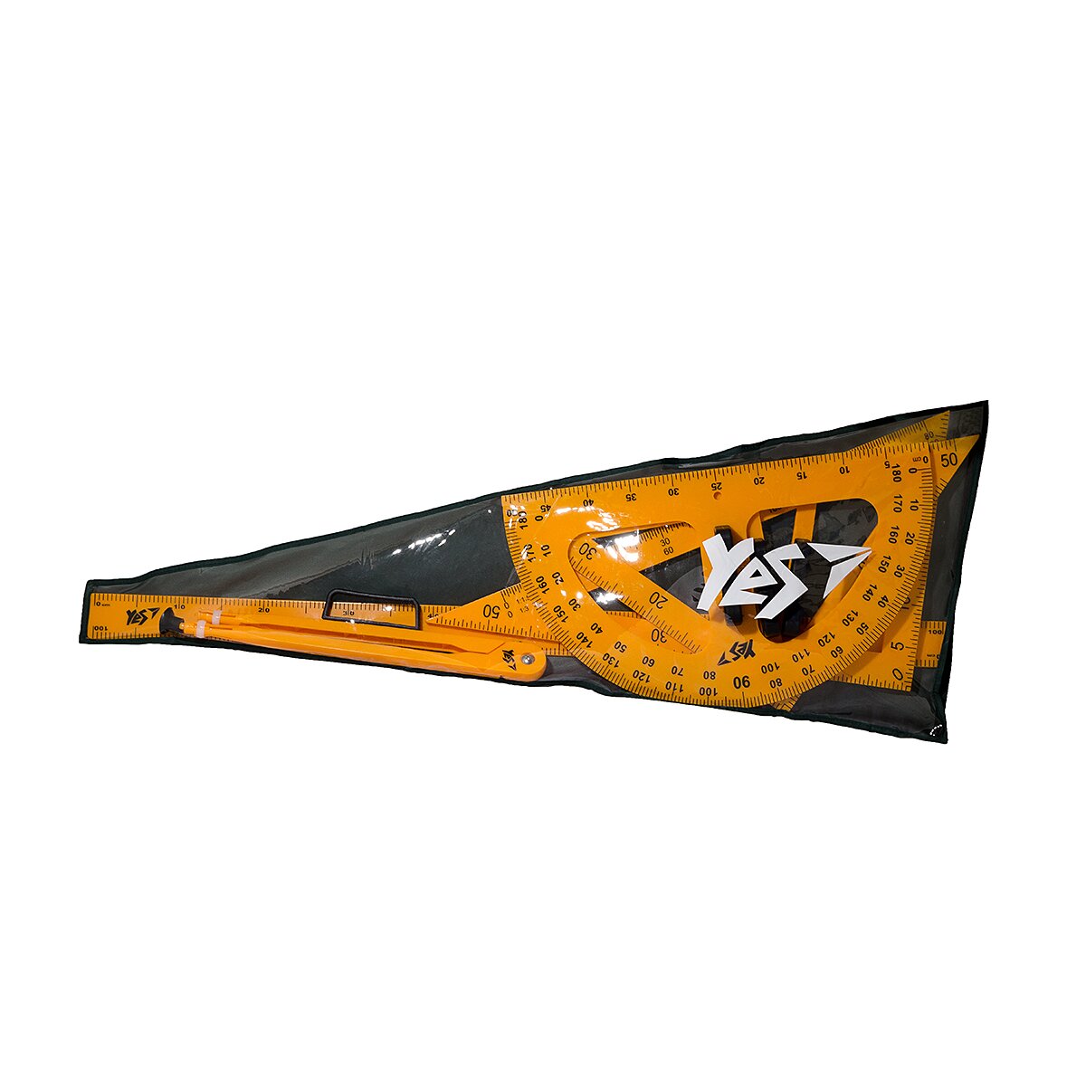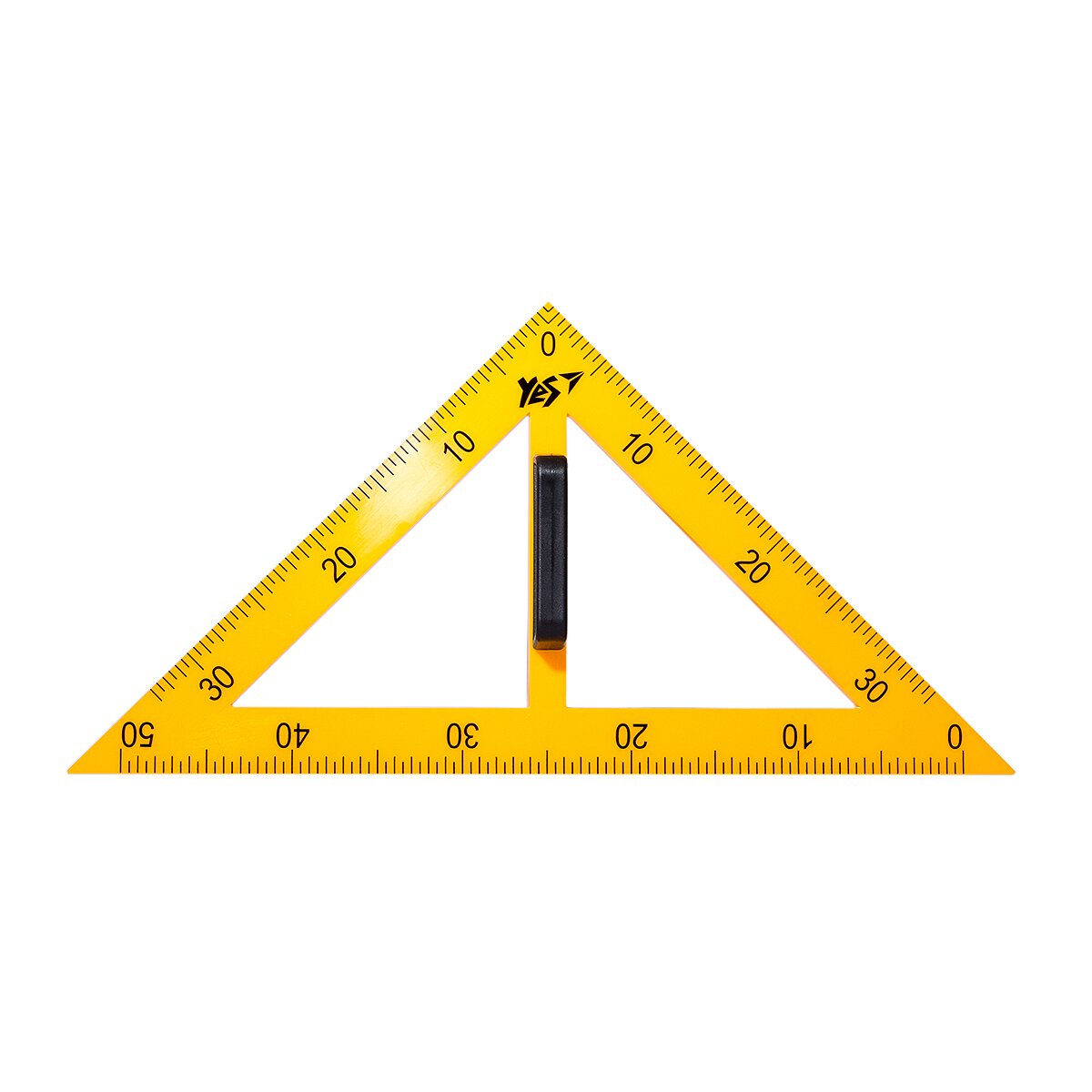 Набор измерительных предметов для доски из 5 предметов: линейка 100 см, транспортир, равнобедренный и прямоугольный треугольники, циркуль.