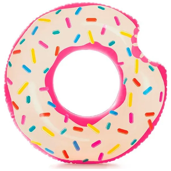 Розовый пончик в глазури и кондитерской посыпке – отличный пляжный аксессуар. Это не только симпатичный, но и удобный надувной круг, на котором вы можете плавать и просто отдыхать на воде.
