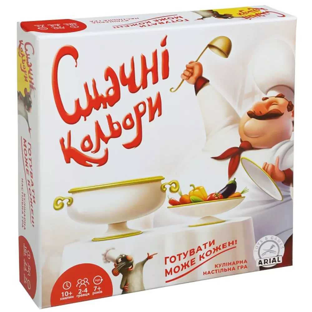 В комплекте: 242 карточки ингредиентов; 36 карточек с рецептами; рулетка; правила игры.