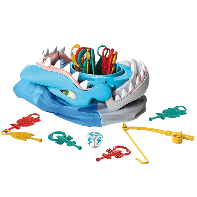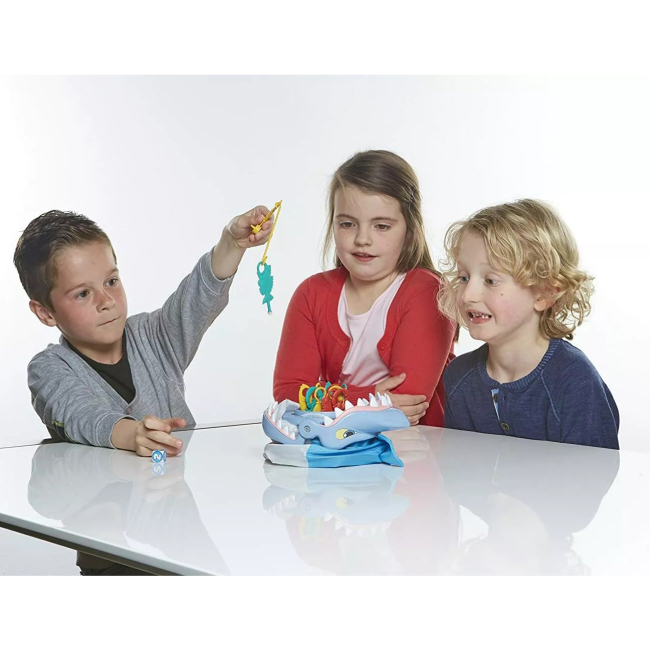 Настольная игра Goliath Внезапный кусь поможет весело провести время. Поймайте рыбу и станьте победителем! Но если акула прыгнет, вы станете ее обедом! Размещайте веселых и красочных морских существ в игровом устройстве с помощью оснастки, и хватайте друзей, чтобы начать играть. Игроки по очереди бросают кубик и ловят морских обитателей удочками. Но будьте осторожны – никогда не знаешь, когда укусит акула! Рекомендовано для детей от 4-х лет.