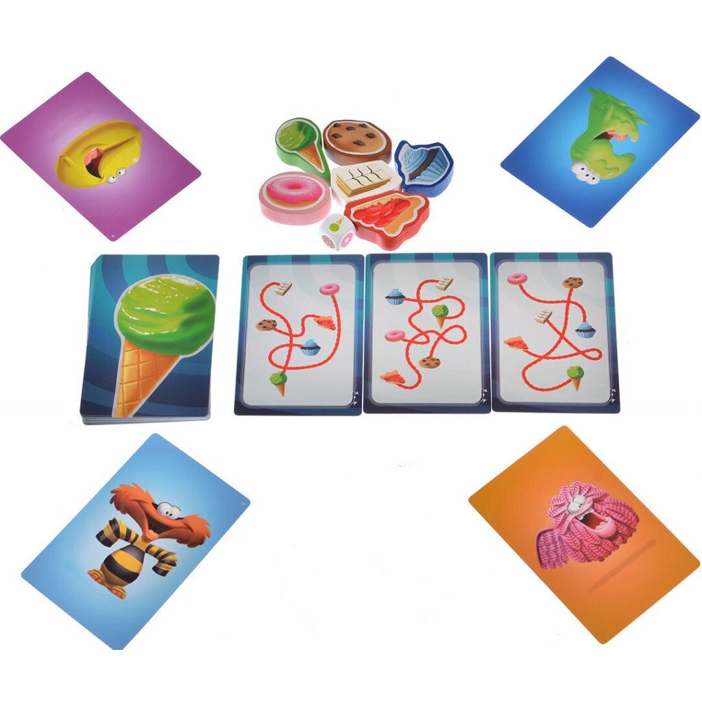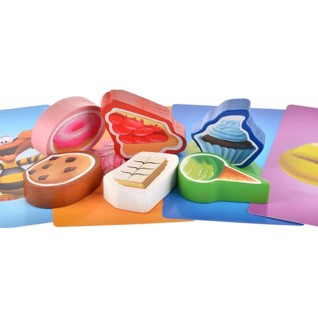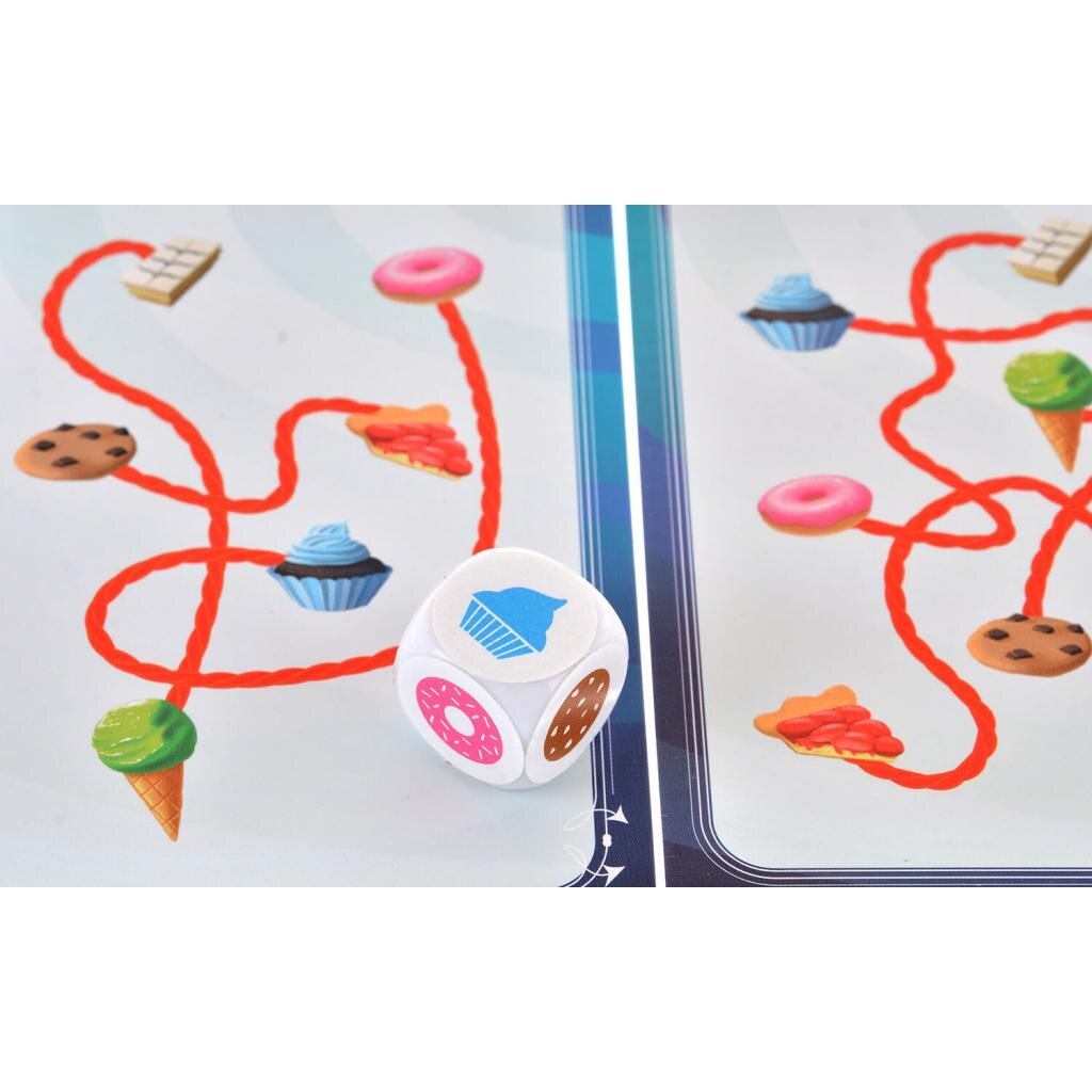 Вы играете за маленьких человечков-сладкоежек с большим аппетитом. Каждый ход вам нужно найти сладость раньше других и схватить верную фишку. Кто первым найдёт пять сладостей, побеждает. Кидайте кубик. Он покажет начальную сладость. Проследите по верёвке путь к последней сладости. Хватайте нужную фишку!